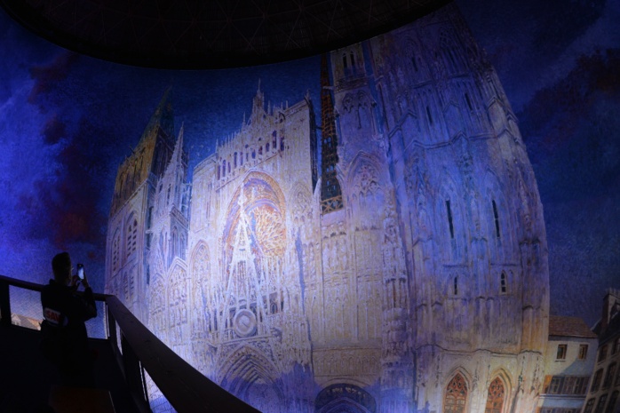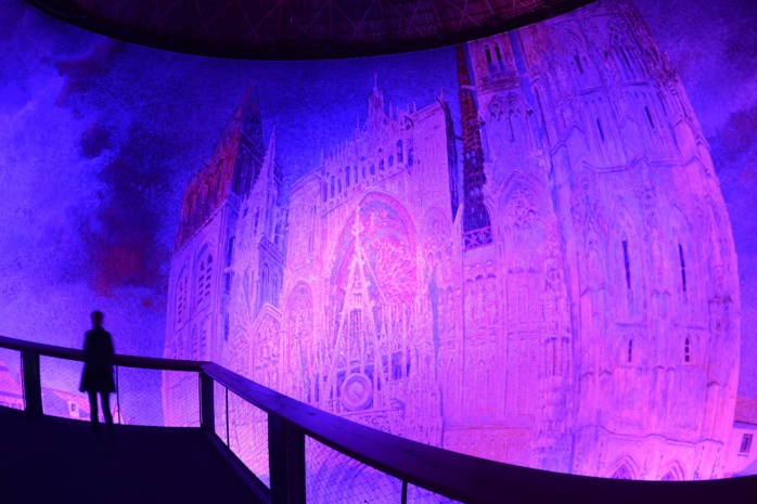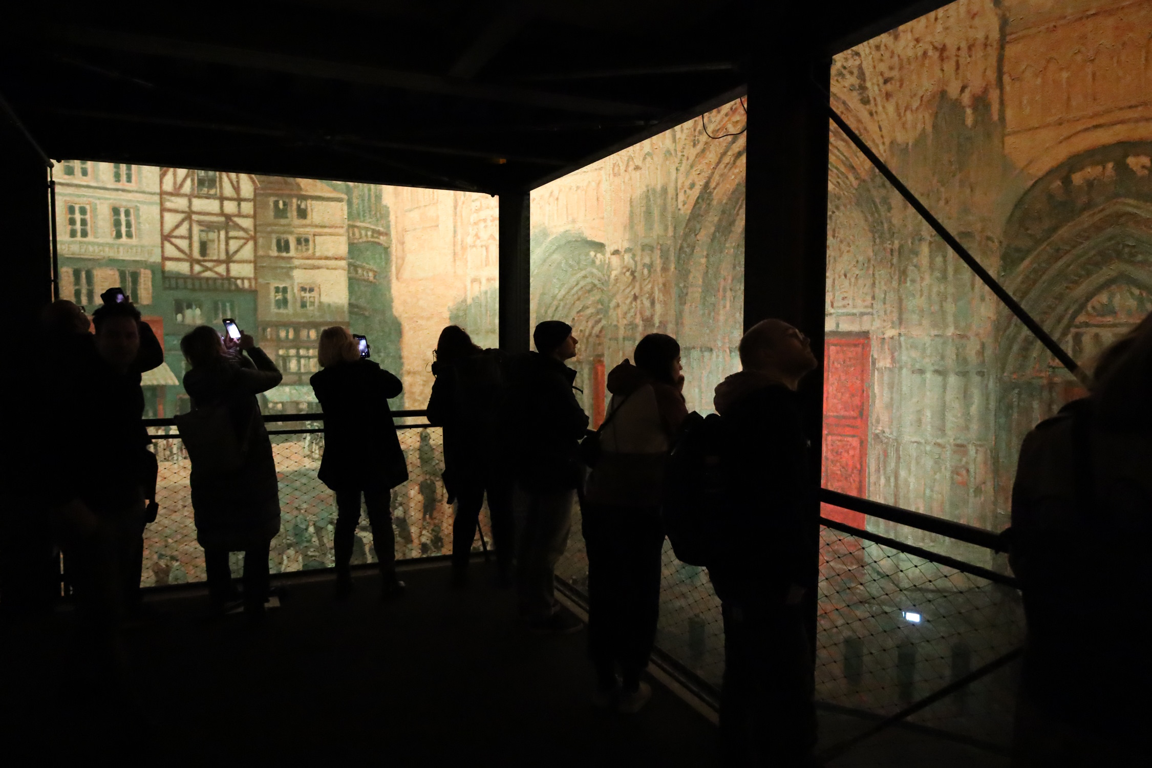 Ein facettenreiches Spiel von außergewöhnlichen Farbnuancen, Schattierungen und Lichteinfällen durchzieht die gesamte Umgebung. Auf dem Vorplatz der Kathedrale verewigt Asisi bekannte Maler und Zeitgenossen wie Vincent van Gogh, Auguste Renoir und Claude Monet.“