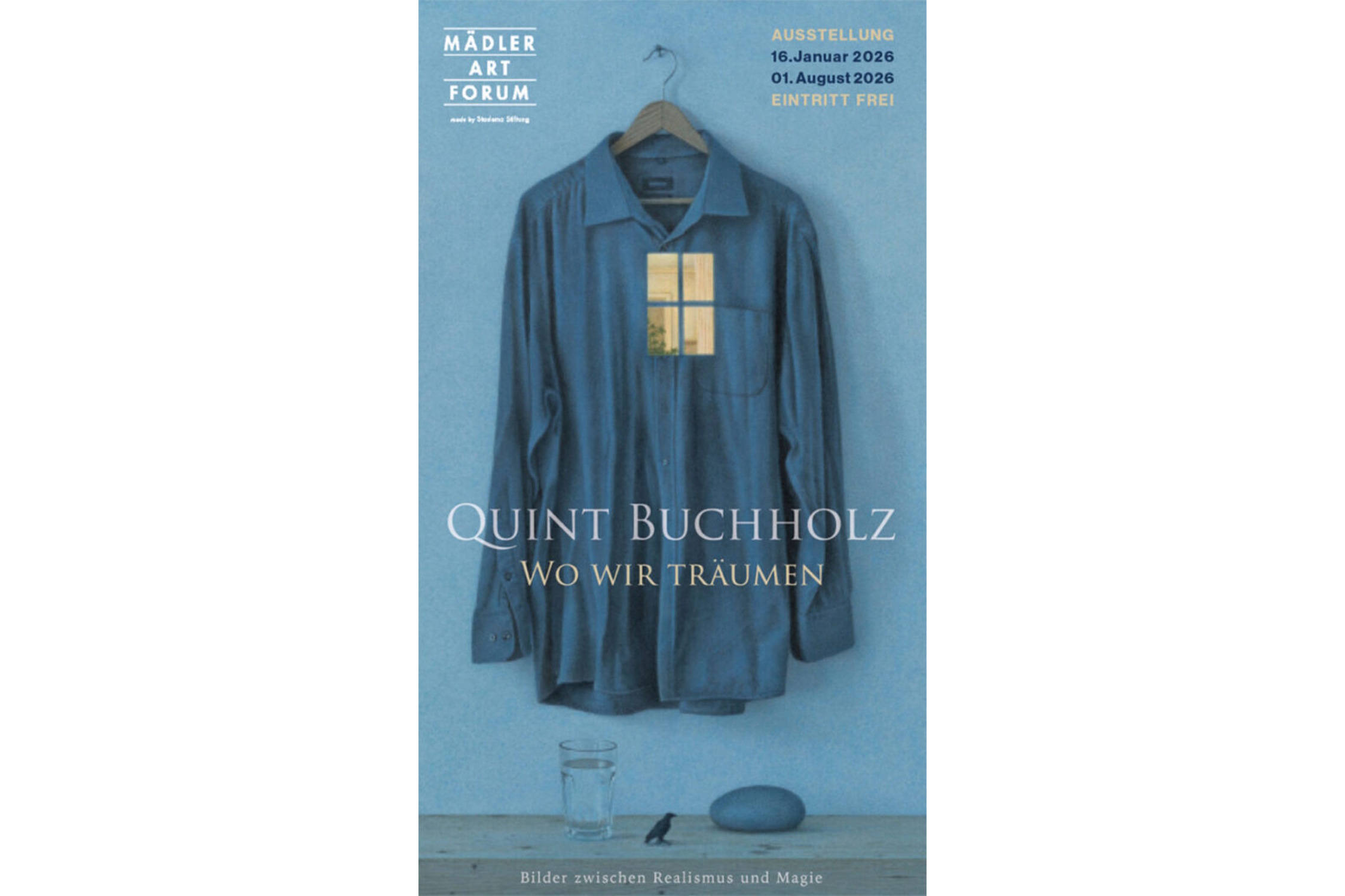 Die Ausstellung „Quint Buchholz. Wo wir träumen. Bilder zwischen Realismus und Magie“ ist im Mädler Art Forum bis zum 1. August 2026 zu sehen.