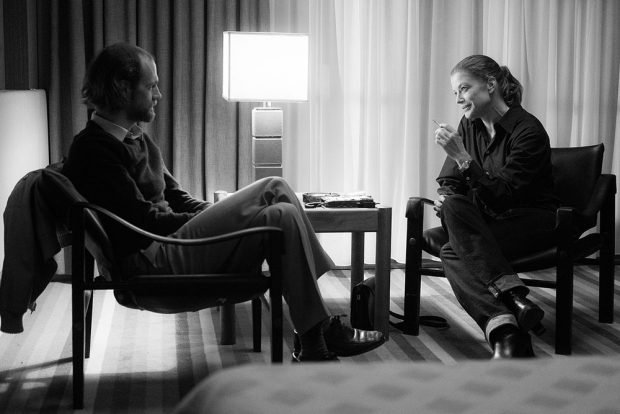 Natürlich hat auch die Rolle des Fotografen Ambivalenzen. Weil er die Schauspielerin in gewissem Maße benutzt. Nicht so sehr aber wie der Interviewer Michael Jürgs, von Robert Gwisdek als kaum aushaltbaren Kotzbrocken mit kalter, schnarrender Stimme gespielt, der die unglaublichsten manipulativen Fragen stellt. Fragen, die ihm nicht zustehen. Fragen, die aus dem Nichts an die Schmerzgrenze preschen.
