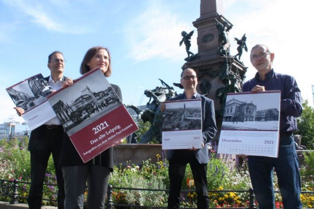 Den präsentierten am Mittwoch, 2. September, das Stadtgeschichtliche Museum und die LTM wieder gemeinsam am Mendebrunnen auf dem Augustusplatz. Ein doppeltes Jubiläum. Denn es ist der 20. historische Kalender, den beide Institutionen gemeinsam herausgebracht haben. Und es ist quasi der Abschied für Christoph Kaufmann, der nach einem Leben im Fotoarchiv des Stadtgeschichtlichen Museums in den Ruhestand geht.