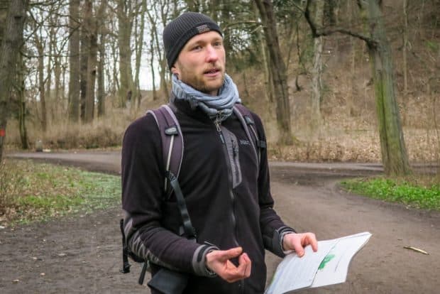 „Dieses kleine Abenteuer“, wie es Falko Haak nennt, führt durch das nördliche Rosental bis ans Ufer des Elsterbeckens durch den artenreichen Leipziger Auwald. Zu den kleinen Aufgaben und naturkundlichen Entdeckungen gehörten zum Beispiel Fragen wie: „Erkennt ihr die Frühblüher im Auwald? Könnt ihr die Tierspuren lesen?“