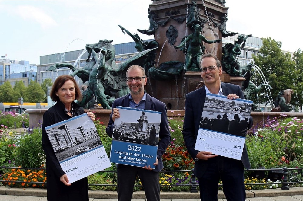 Es ist schon der 21. Historische Kalender, den die Leipzig Tourismus und Marketing GmbH (LTM) und das Stadtgeschichtliche Museum am Donnerstag, 2. September am fröhlich plätschernden Mendebrunnen vorstellen konnten. Er hat sich zum beliebtesten Leipziger Kalender entwickelt. Und was noch vor einigen Jahren befürchtet wurde, hat sich nicht bewahrheitet: Dem Stadtgeschichtlichen Museum gehen die Motive für den Kalender ganz und gar nicht aus. Deshalb gibt es diesmal auch zwei Neuerungen.