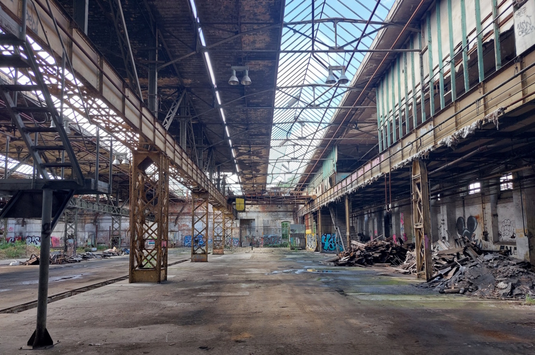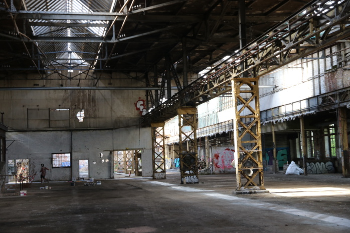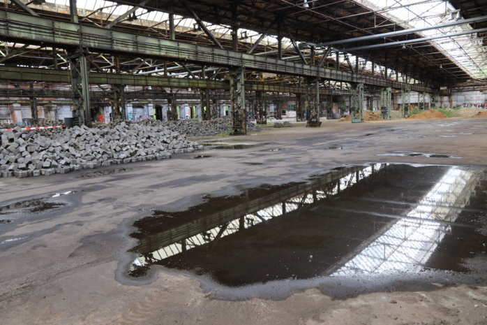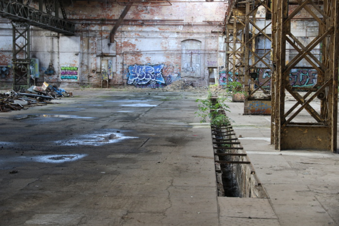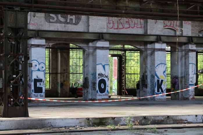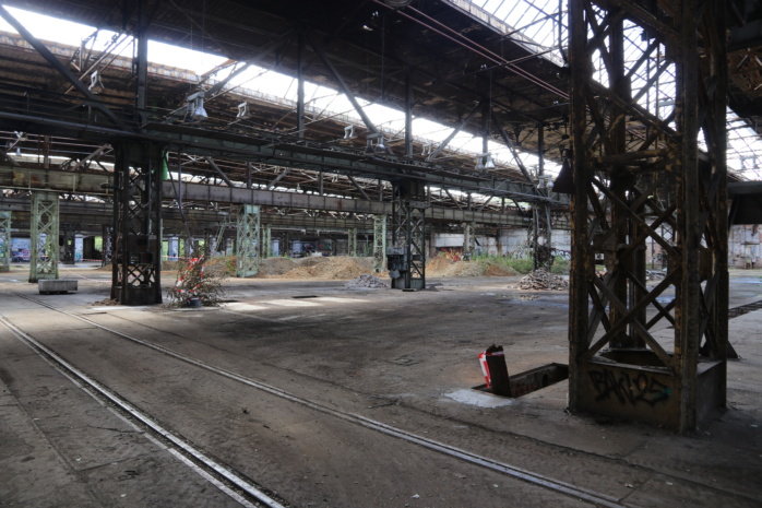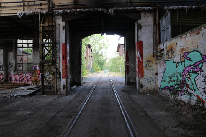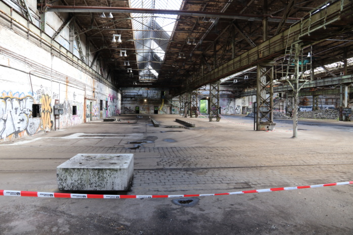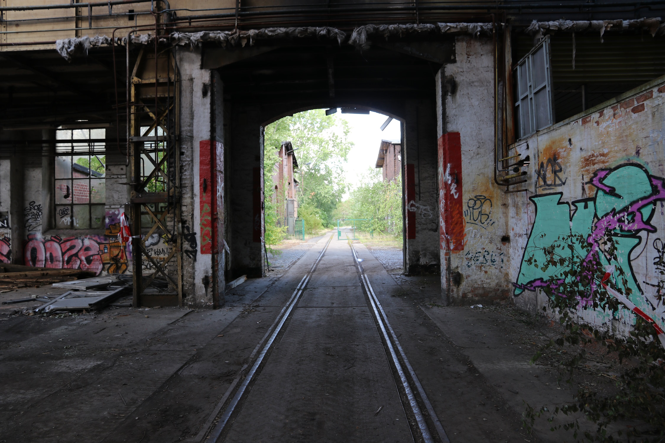 LZ-Fotografin Sabine Eicker hat den Ort des Geschehens schon einmal unter die Lupe genommen, einen der noch erlebbaren Lost Spaces in Leipzig. Am Wochenende waren die Vorbereitungen für die ibug in vollem Gange. Immerhin musste das 1905 in Betrieb genommene Reichsbahnausbesserungswerk in Engelsdorf für die geplanten Aktionen erst einmal betriebssicher gemacht werden. Nach 1990 verlor das Betriebswerk, das 1989 noch 2.300 Menschen beschäftige, nach und nach seine Rolle als Ausbesserungswerk. Nur auf einem kleinen Teil des Geländes werden noch Schienenfahrzeuge gewartet. Die leer stehenden Hallen auf dem Gelände sind dem Zahn der Zeit ausgesetzt.