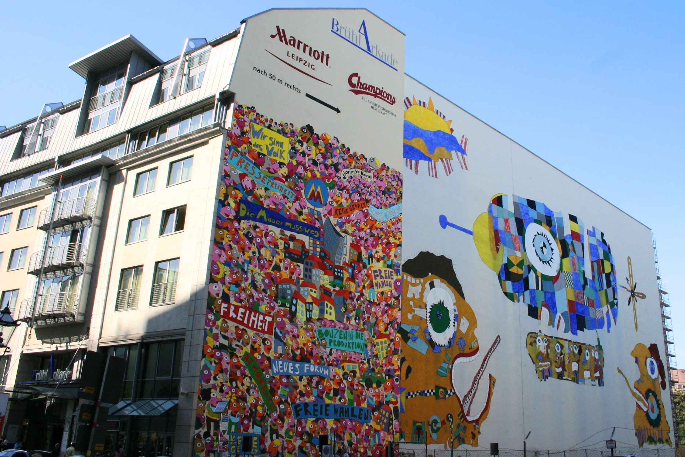 Das Wandgemälde wurde 2009 anlässlich des 20. Jahrestags des Mauerfalls geschaffen – als farbenfrohes und unübersehbares Zeichen für Demokratie, Frieden und Freiheit. Über 15 Jahre lang war es ein markanter Bestandteil des Leipziger Stadtbilds und eine schon vom Hauptbahnhof aus sichtbare Erinnerung an die Friedliche Revolution.