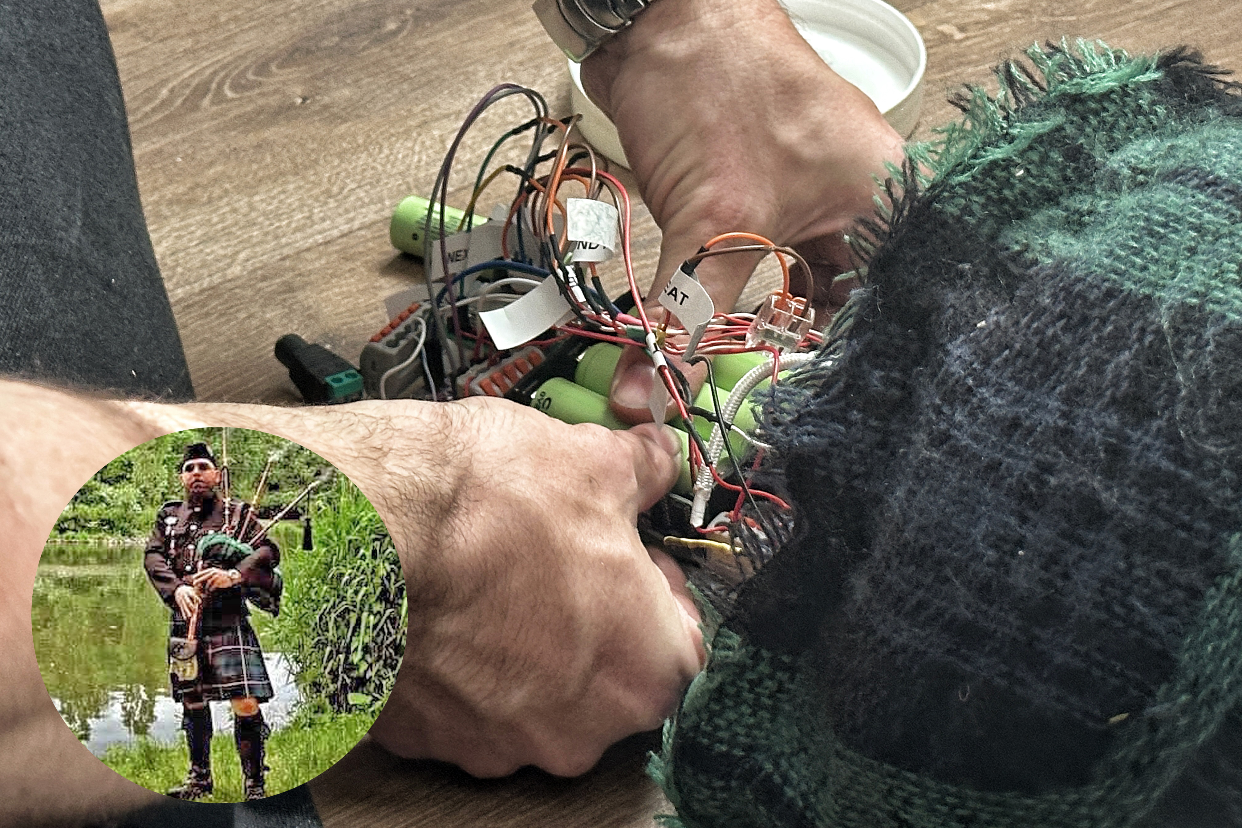 Wovon träumt jemand, der mit seinem handwerklichen Geschick nach Feierabend Illusionen greifbar macht? Für Falco ist die Frage beantwortet. Im Zimmer neben der Werkstatt stehen Rucksäcke. Der Raum ist dekoriert mit Fahnen und Karten Schottlands. Und dorthin geht nicht nur die Reise nach dem Wave-Gotik-Treffen, sondern auch die Sehnsucht, die er mit seiner Frau teilt. Natürlich frage ich nach dem Wetter.