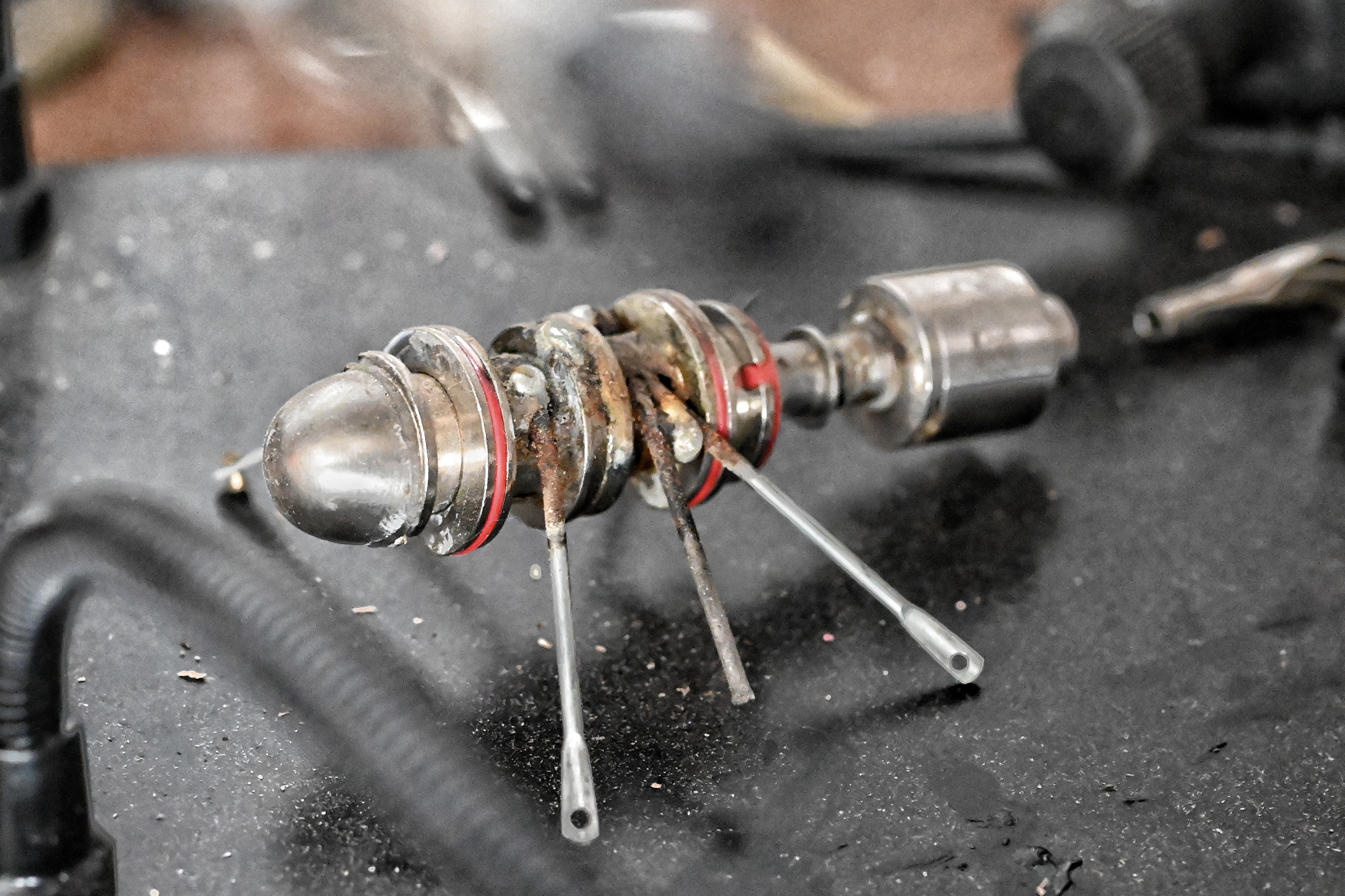 Falco ist jemand, der nicht aufgibt. Während unseres Gesprächs in der Werkstatt passiert es! Epoxidharz muss „entgast“ werden, damit es später glasklar ist. Allein die Apparatur erinnert an Vernes „Erfindung des Verderbens“. Ein Kunstharz, das ein bisschen wie Bernstein funktioniert, nur eben nicht in Millionen Jahren, sondern nach wenigen Minuten. Vorausgesetzt, man verquatscht sich nicht. Ich habe ihn abgelenkt, das Ergebnis ist Murks. Mir ist das peinlich.