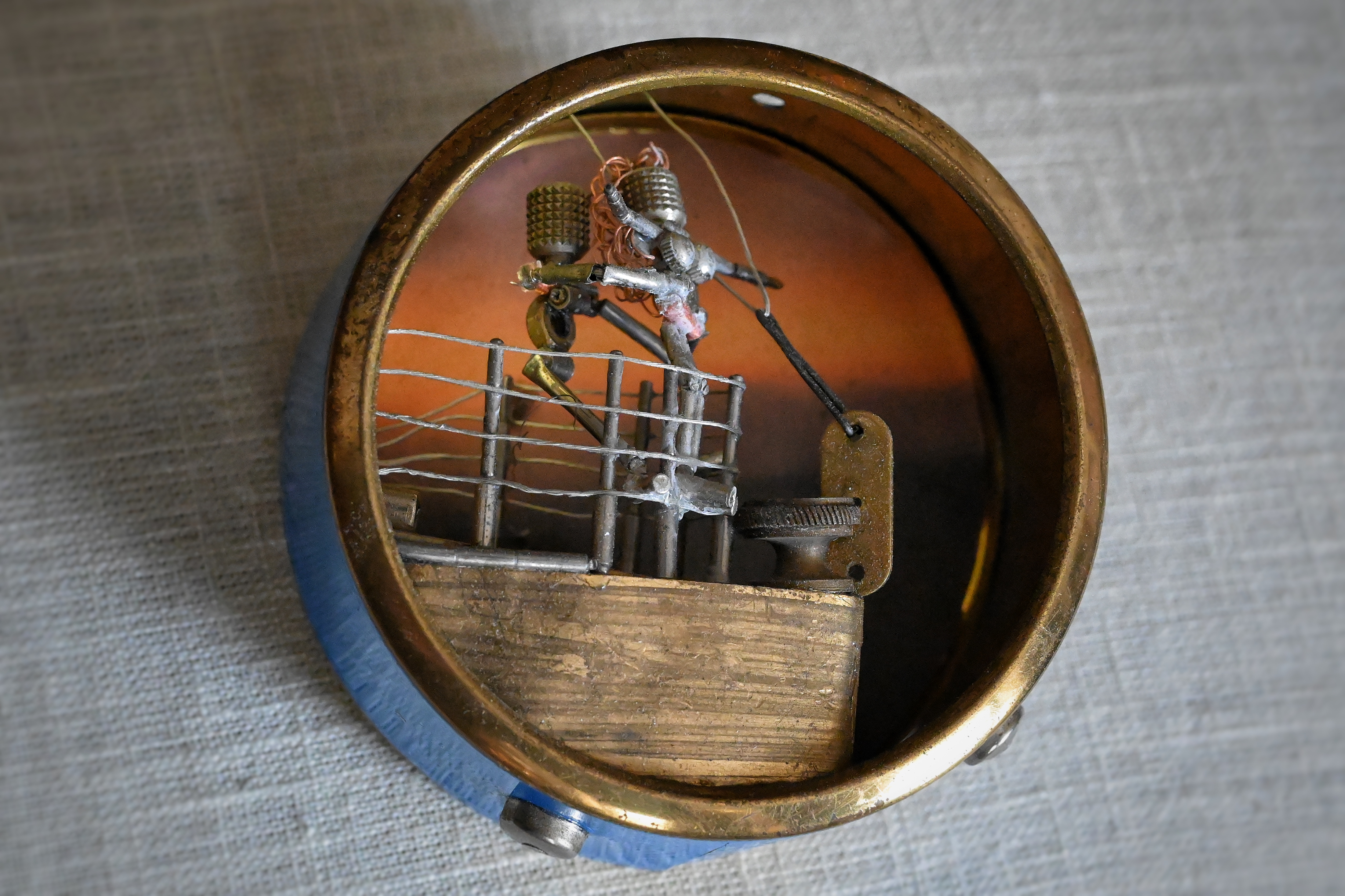 Denn nicht nur Hüte und Gewänder warten im Steampunk-Stil auf, sondern auch feinste Miniaturen. Ein Fischlein schwebt zwischen Sonne und Mond. Dass beide aus den Zahnrädern der Zeit bestehen – dem kleinen Flossenwesen ist es egal. Unter den Fingern von Falco Jäger verliert das alles seine irdische Bedeutung. Am 7. Juni 2025 steht er mit seinen faszinierenden Konstrukten ab 13 Uhr im Clara-Zetkin-Park.