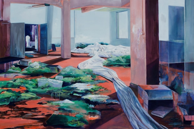 Passend zu diesem Bild „Theaterfabrik“ von Dorothea Liebscher liest Ralph Grüneberger einen Auszug aus dem Part über die Leipziger Schauspiel-Elevin Monika alias Monique.