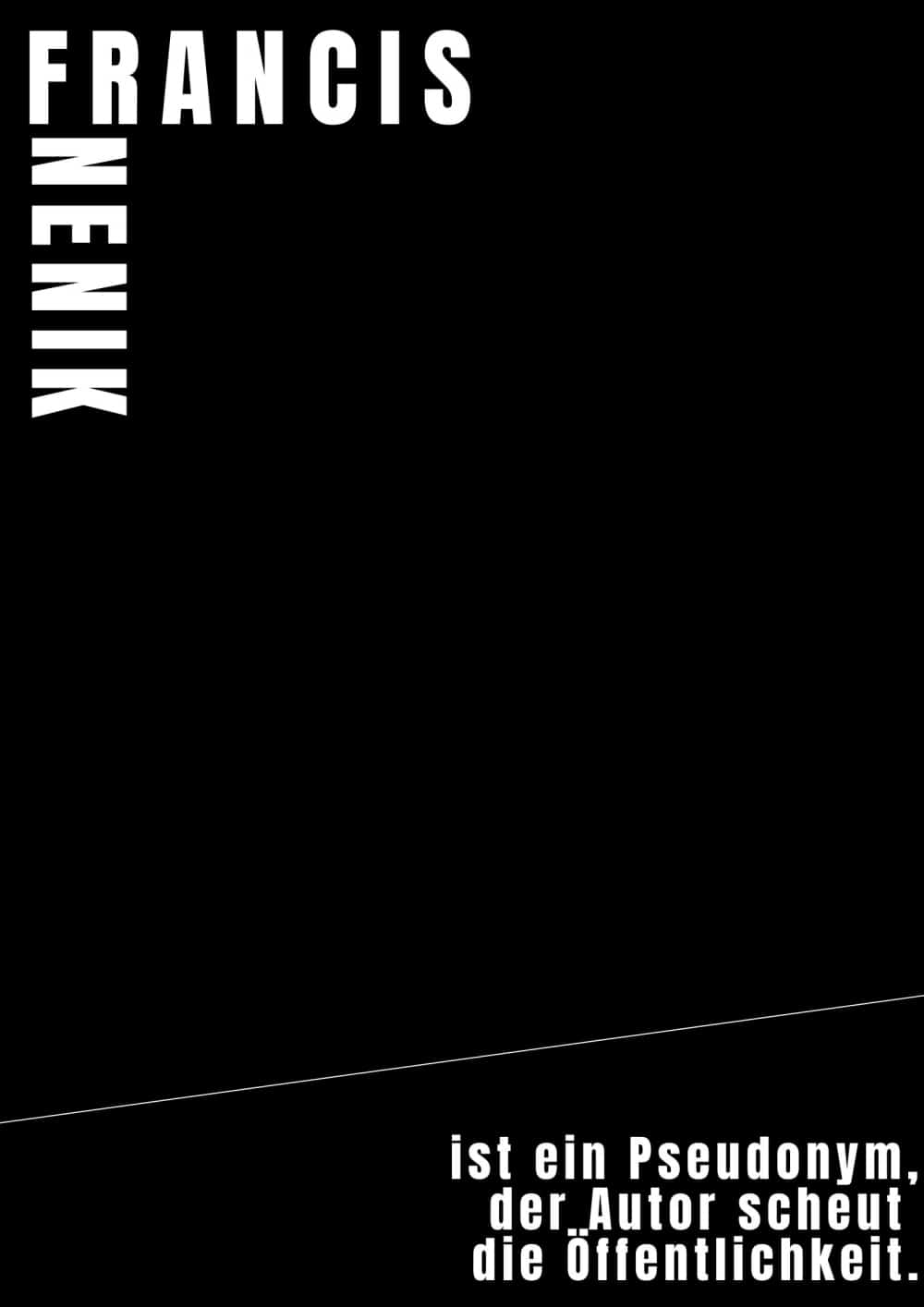 Francis Nenik (geb. 1981) ist ein Pseudonym. Der Autor lebt bei Leipzig und schreibt kurze Prosaformen, literarische Essays und Romane, daneben veröffentlicht er Podcasts und Hörspiele. Bei Voland & Quist erschienen das Sachbuch „Reise durch ein tragikomisches Jahrhundert. Das irrwitzige Leben des Hasso Grabner“ (2018) und seine englische Übersetzung (2020, V&Q Books) sowie der Roman „E. oder Die Insel“ (2021).