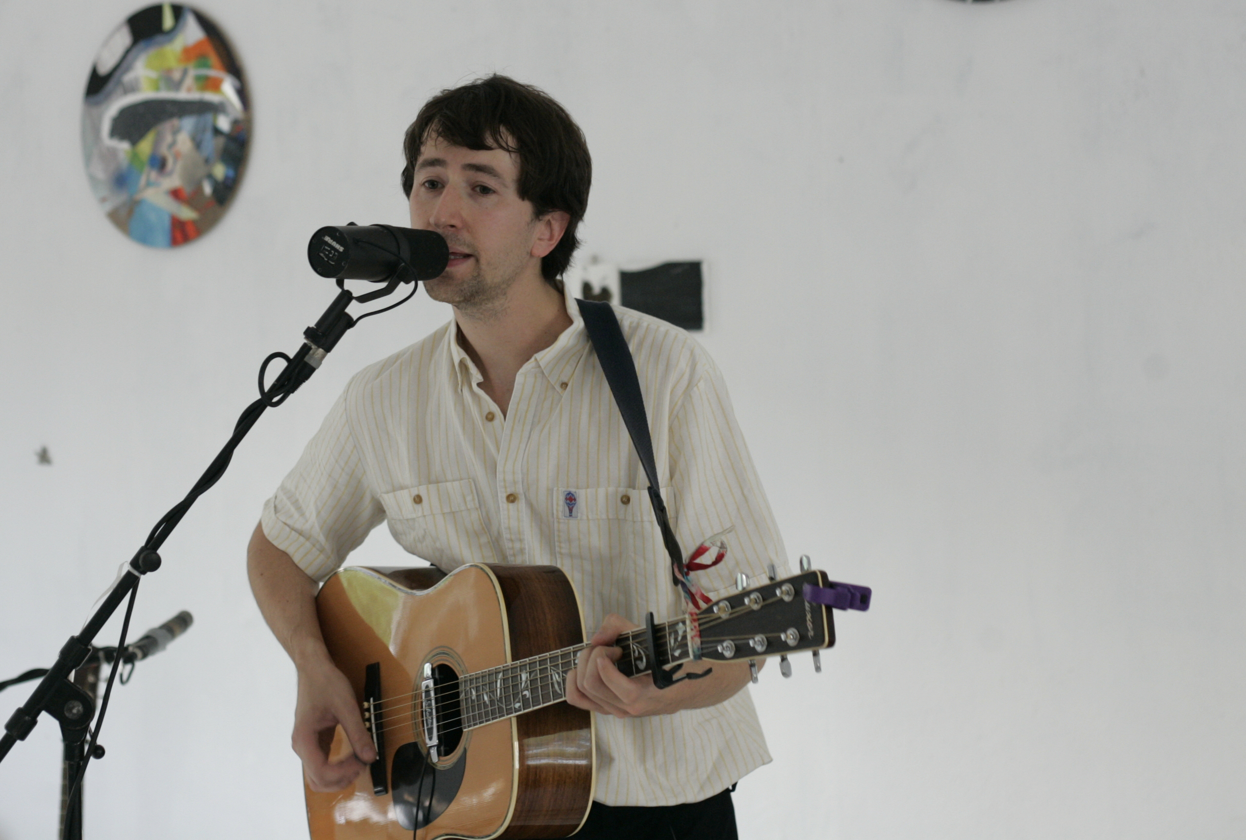 Tropische Wärme, vorwiegend junge Menschen, die sich beseelt auf Sofas fläzen oder es sich andächtig auf dem Fußboden bequem machen und Live-Musik im kleinen Kreis. So lässt sich das Mini-Sommerfestival in Peter Pieks Atelier-Räumen in der Dessauer Straße beschreiben. Wo der Maler und Musiker sonst seine Werke ausbreitet, steht die breite Palette an Instrumenten, die die Gäste Alma Church Choir und Ian Fisher mitgebracht haben.