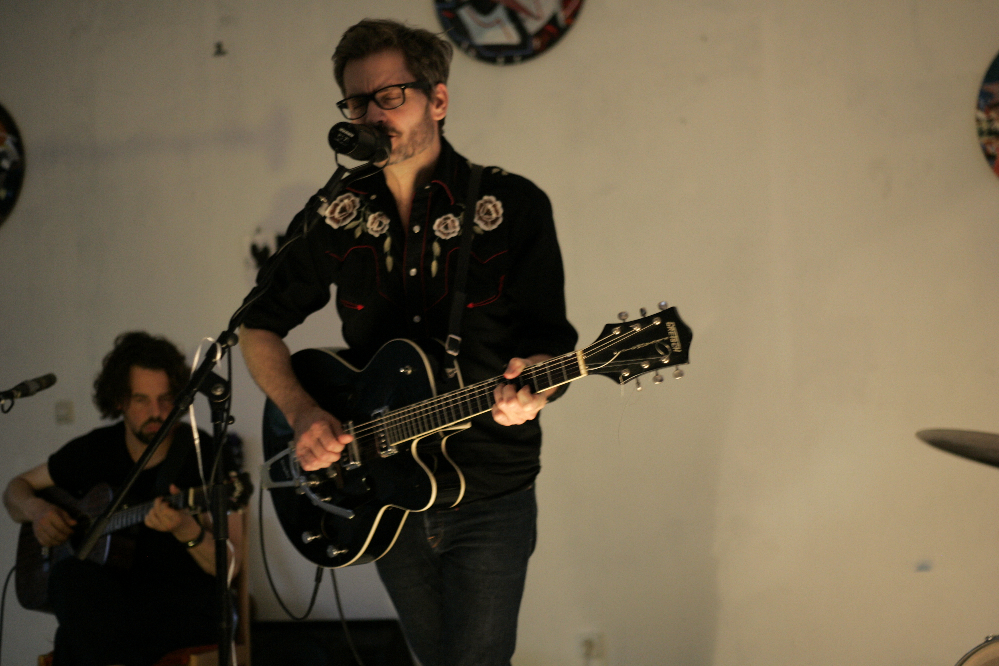 Zu den weiteren Mitbringseln aus der Klangküche gehören statt eines Plektrums ein Essstäbchen, um die Gitarrensaiten anzuschlagen. Was sein Sänger und Gitarrist kann, ist für Drummer Daniel Schröteler erst recht keine Schwierigkeit, und so tauscht auch er die Stöcke mit den Stäbchen. Bassist Simon Bauer sorgt später noch für sphärische Obertöne, die fast schon flötengleich klingen. So entsteht eine höchst abwechslungsreiche, aber immer harmonische Mischung, mit satten Country-Einflüssen und einem Schuss Rock. „Ich will kein Ami sein, ich will kein Deutscher sein, ich will gar nix sein, außer was ich bin“, gibt Ian Fisher in einem kritischen Berlin-Lied als Zugabe zum Besten und wirft der Metropole in seinem einzigen deutschen Titel des Abends vor: „Du bist keine Stadt, du bist gar nix.“ Gentrifizierung und Entfremdung als Sujets geben dem Abend trotz der ernsten Thematik einen sehr amüsanten Abschluss, der noch in Fishers Geburtstag mündet. „In gut zwanzig Minuten werde ich 28, wenn ich diese Zeit überlebe, bin ich eigentlich kein richtiger Musiker“, spielt er gutgelaunt auf den von in diesem Alter verstorbenen Künstlern des „27er Club“, wie Amy Whinehouse, an. Belohnt wird der dem Schicksal frisch entkommene mit einem Schokokuchen gegen den Mitternachtshunger bevor sich die Gemeinschaft auflöst.