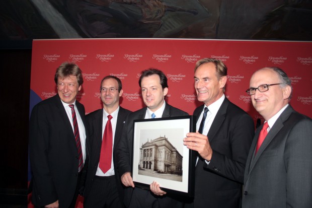 “Dies ist ein guter Tag, nicht nur für das Gewandhaus, sondern auch für die ganze Stadt”, versprach OBM Burkhard Jung (SPD) während der Pressekonferenz. Jedermann konnte im Foyer die positive Aufbruchsstimmung spüren, als Nelsons den Raum betrat. Pressevertreter und geladene Gäste spendeten spontan Beifall. “Andris Nelsons ist bekannt in Leipzig. Das Orchester hat davon geschwärmt, mit ihm zu arbeiten”, berichtete Jung. “Lieber Andris, herzlich Willkommen. Schön , dass dieses Orchester dein großer Wunsch ist.” Der Verwaltungschef schilderte, dass der amtierende Kapellmeister Riccardo Chailly, dessen Vertrag eigentlich noch bis 2020 lief, ihm schon im Sommer 2014 um die Suche eines Nachfolgers gebeten hatte. Wie vergangene Woche bekannt wurde, wird das Engagement des Mailänders zum Sommer 2016 beendet werden. Als Begrüßungspräsent überreichte Jung dem Dirigenten ein Bild des zweiten Leipziger Gewandhauses, das bauliches Vorbild für die Boston Symphony Hall gewesen ist.