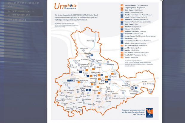 Der Verein „Straße der Musik“ hat sich in Halle gegründet und sammelt seit 2009 Stationen für die fiktive Straße ein. Was für einen Umfang das Projekt annehmen könnte, wenn es tatsächlich einmal alles umfasst, macht eine Zahl deutlich: Es wurden bereits 1.550 Komponisten an mehr als 400 Orten sowie zahlreiche Instrumentenbauer recherchiert.