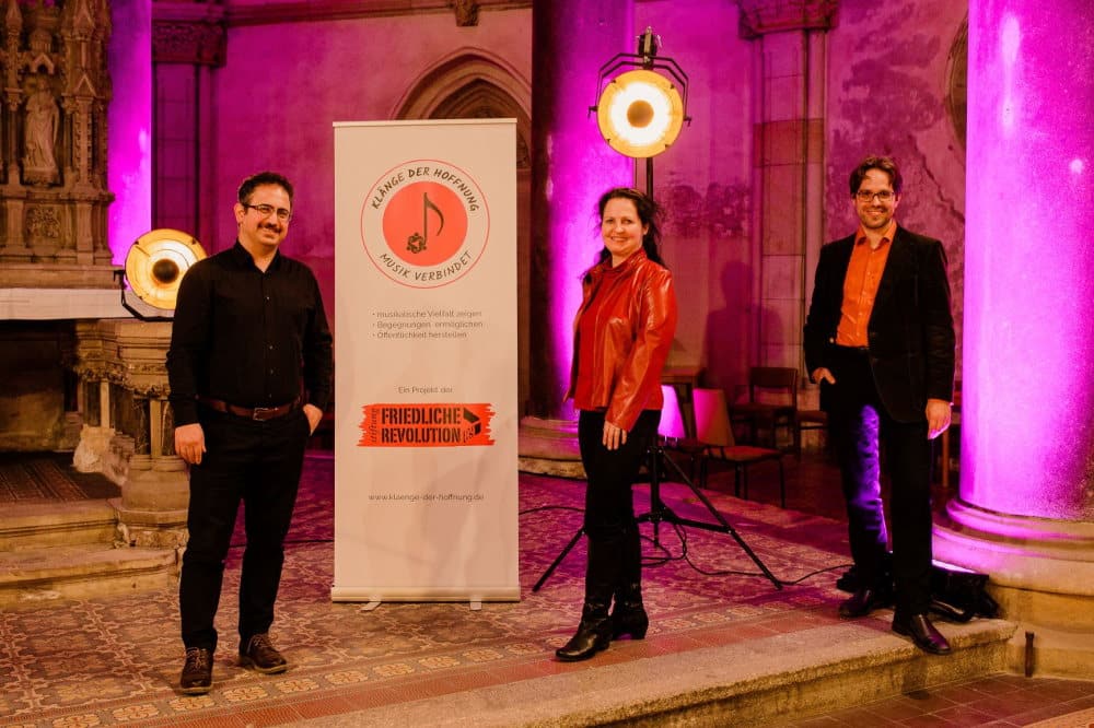 Seit 2016 fördert die Stiftung Friedliche Revolution die Begegnung von Menschen mit und ohne Migrationshintergrund durch das Musikprojekt „Klänge der Hoffnung“. Im März 2021 hat im Rahmen dieses Projektes ein auf zunächst drei Jahre angelegtes Orchester-Vorhaben zum Mitmachen begonnen. Es hat zum Ziel, ein wirklich weltoffenes Laien-Orchester mit rund 35 Musikerinnen und Musikern aufzubauen.