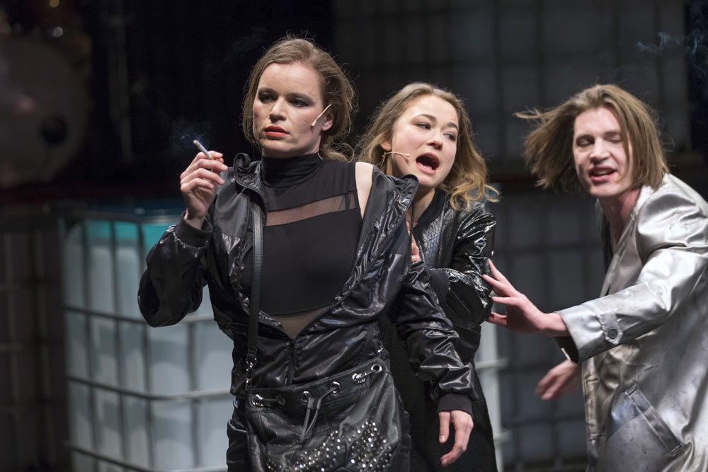 Dreht sich bei Wedekind viel um sexuelle Aufklärung, wissen Calis’ Figuren um ihre Sexualität Bescheid. Der Text stellt deshalb die Fragen nach sexueller Identität und Geschlechterrollen. Harter Stoff für einen Abend, der für Jugendliche ab 13 Jahren konzipiert ist. Doch wann sollte man Teenager mit der Frage nach ihrem Platz im Leben konfrontieren, wenn nicht zu Beginn der Pubertät. Waren die homosexuellen Avancen zwischen Hänschen und Ernst zu Wedekinds Zeit eine Provokation, die sich gegen das konservativ-christliche Bürgertum richtete, erscheint es uns völlig normal, wenn sich Moritz und Ernst (Martin Klemm) auf der Bühne küssen.