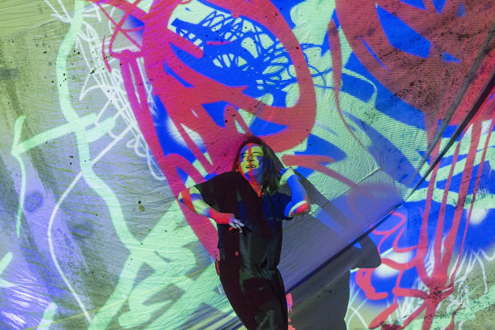 Ein Landstreicher erobert eine Fabrik, spielt und spricht was er sieht und erlebt. „Die Erweiterung des Labyrinths. Keil 3.“ Ein Theaterstück für einen Darsteller mit sphärischer Musik aus der Konserve und bunten Malereien mit Lichtstift, und Malmaschine auf ein weißes Segel. Soweit nichts Neues bei Wolfgang Krause-Zwieback, aber anders sortiert.