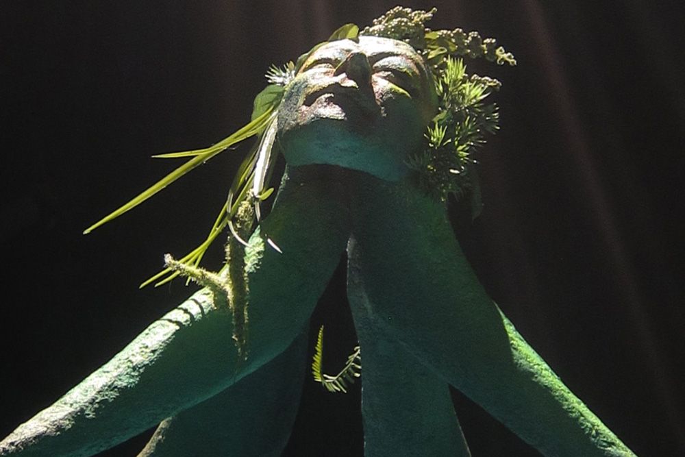 Die Spieler Samira Lehmann und Stefan Wenzel beschwören den kleinen Hexenkerl mit dampfendem Rumms und klirrenden Saiten, lädt der Westflügel ein zur Wiederaufnahme des Stückes. Sie singen und tanzen, versuchen ihn zu fassen und das trübe Wasser mit bunten Farben zu klären. Im magischen Spiegel schlagen sie zu.