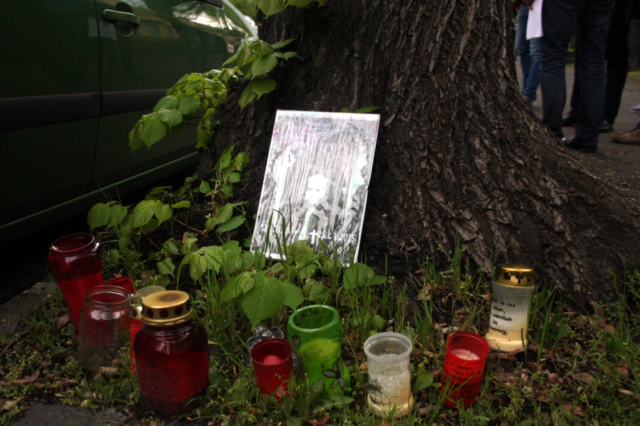 Freunde und Angehörige des 51-Jährigen haben am Tatort Kerzen aufgestellt. Foto: Alexander Böhm