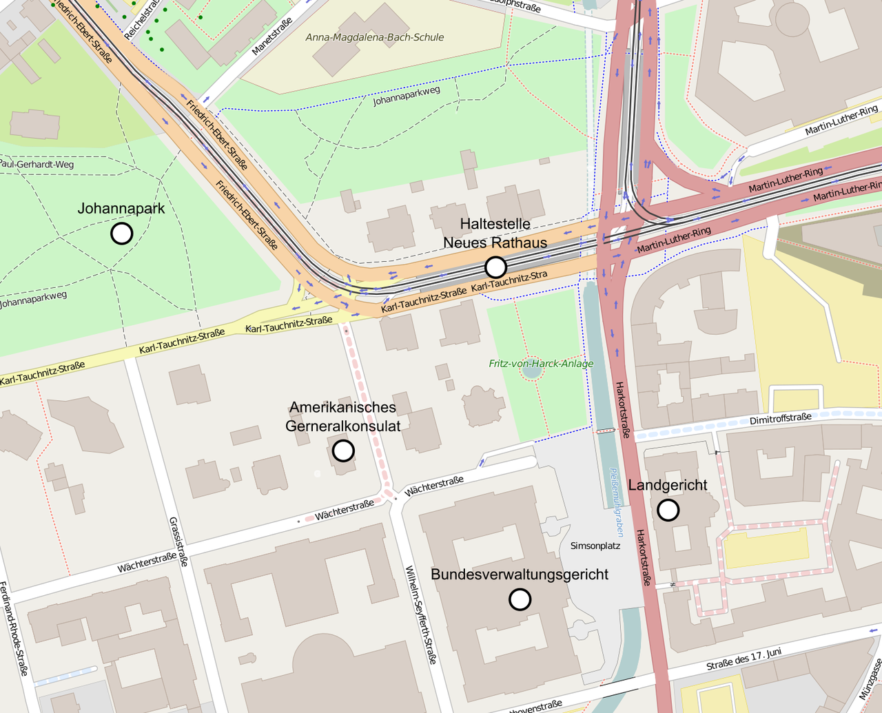Außerdem streuten sie Krähenfüße aus, wodurch mindestens zwei unbeteiligte Fahrzeuge beschädigt wurden. Noch vor der Kreuzung Karl-Tauchnitz-Straße/Harkortstraße konnten die Randalierer durch erste Polizeikräfte abfangen werden, woraufhin diese in Richtung Bundesverwaltungsgericht und schließlich in die Wächterstraße liefen. Auf ihrem Weg zerstörten sie mehrere Fenster des Bundesverwaltungsgerichtes und warfen Steine und Flaschen auf die das amerikanische Konsulat bewachenden Kräfte. Außerdem attackierten sie die Einsatzkräfte der Polizei verbal und diffamierten sie. In der Wächterstraße löste sich die Ansammlung in alle Richtungen auf.