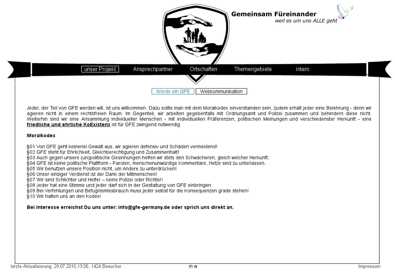 Die grundlegende Ausrichtung gefiel nicht allen Gründern. „Da wir als GFE nicht auf Gewalt setzen, nicht auf Hetze eingehen, reduzierte sich unser Team vorläufig“, wird zur Einführung eines „Moralkodex“ bekanntgegeben. Der Kodex richtet sich gegen Gewalt, Hetze und menschenunwürdige Kommentare.