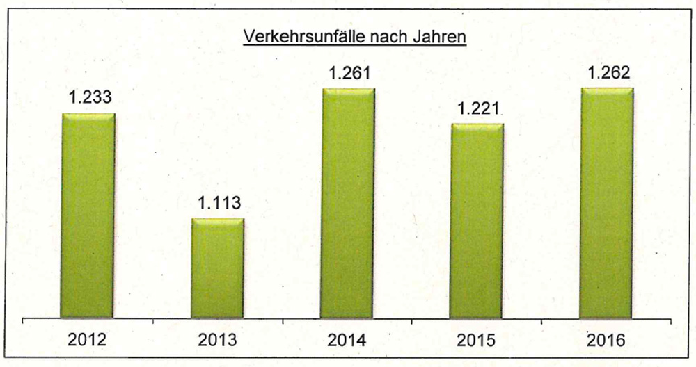 Denn die Zahl der Verletzten und Getöteten ist von 2.367 auf 2.536 deutlich gestiegen. Wobei die Zahl der Getöteten selbst nach wie vor niedrig ist: 2012 waren es 15, 2016 dann 14. Zwischenzeitlich waren es auch schon mal 8 (2015). Und das bestätigt das mulmige Bauchgefühl der Stadträte aus dem Jahr 2015.
