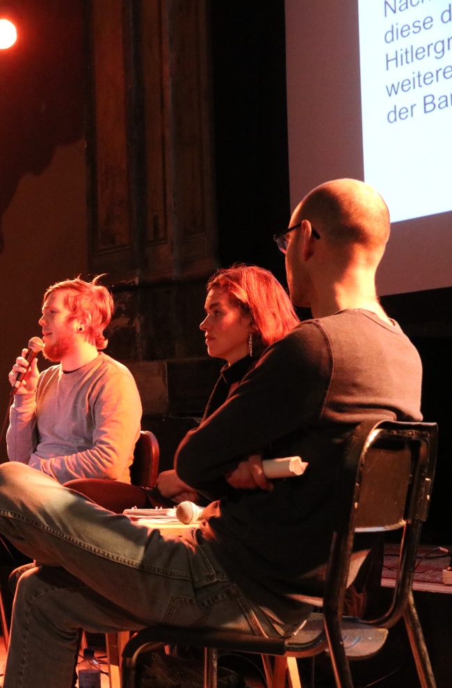 Neben Vertretern vom Fußballverein Roter Stern und Ivo von der Alternativen Wohnungsgenossenschaft Connewitz (AWC) hatten dazu auf dem Podium Heike Kleffner (Mitherausgeberin des Buches „Unter Sachsen“), die Stadträtin und Landtagsabgeordnete Juliane Nagel (Die Linke) und Steven Hummel, Pressesprecher von chronik.LE Platz genommen.