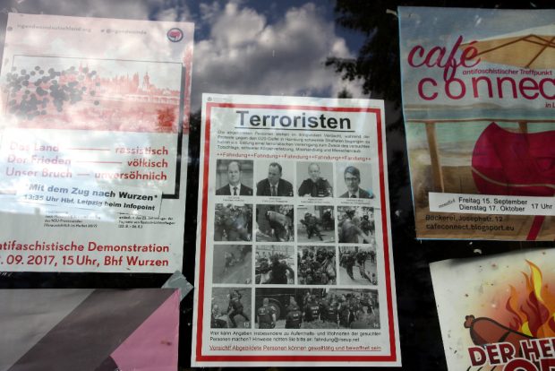 Ein seit mehreren Monaten im Schaufenster des Linxxnet klebender Fahndungsaufruf nach Polizisten und Politikern schlägt nun hohe Wellen. Weil es “die Zeitung” in Leipzig endlich entdeckt hat. Auf dem Plakat, das staatlichen Fahndungsaufrufen ähnelt und mit „Terroristen“ überschrieben ist, sind 14 Fotos zu sehen. In der obersten Reihe befinden sich Porträtaufnahmen des Hamburger Bürgermeisters Olaf Scholz, des Hamburger Innensenators Andy Grote (beide SPD), des G20-Gesamtpolizeiführers Hartmut Dudde und des Hamburger Polizeipräsidenten Ralf Martin Meyer.