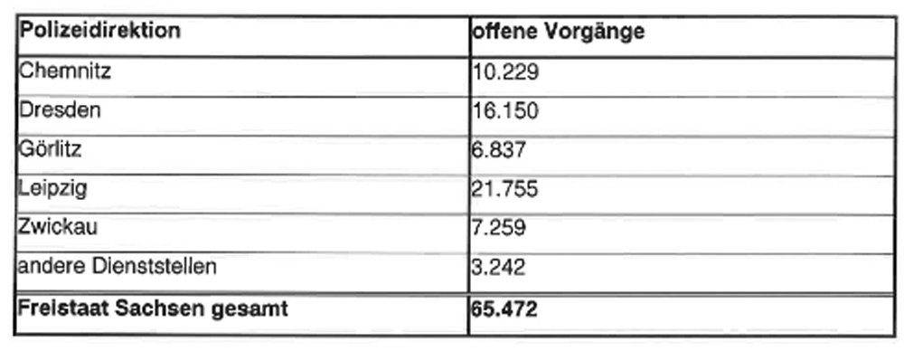 Als Beispiel fügen wir hier einfach das Ergebnis aus der Februar-Anfrage des Landtagsabgeordneten Enrico Stange (Linke) ein. Mit über 21.700 offenen Vorgängen entfiel auch im Februar 2017 noch ein Drittel aller offenen Vorgänge in Sachsen auf die Polizei-Direktion Leipzig. Man hat zwar 2017 einiges von dem aufgeholt, was 2015 und 2016 liegenblieb, aber man schiebt trotzdem noch den größten Berg von unbeendeten Fällen vor sich her.