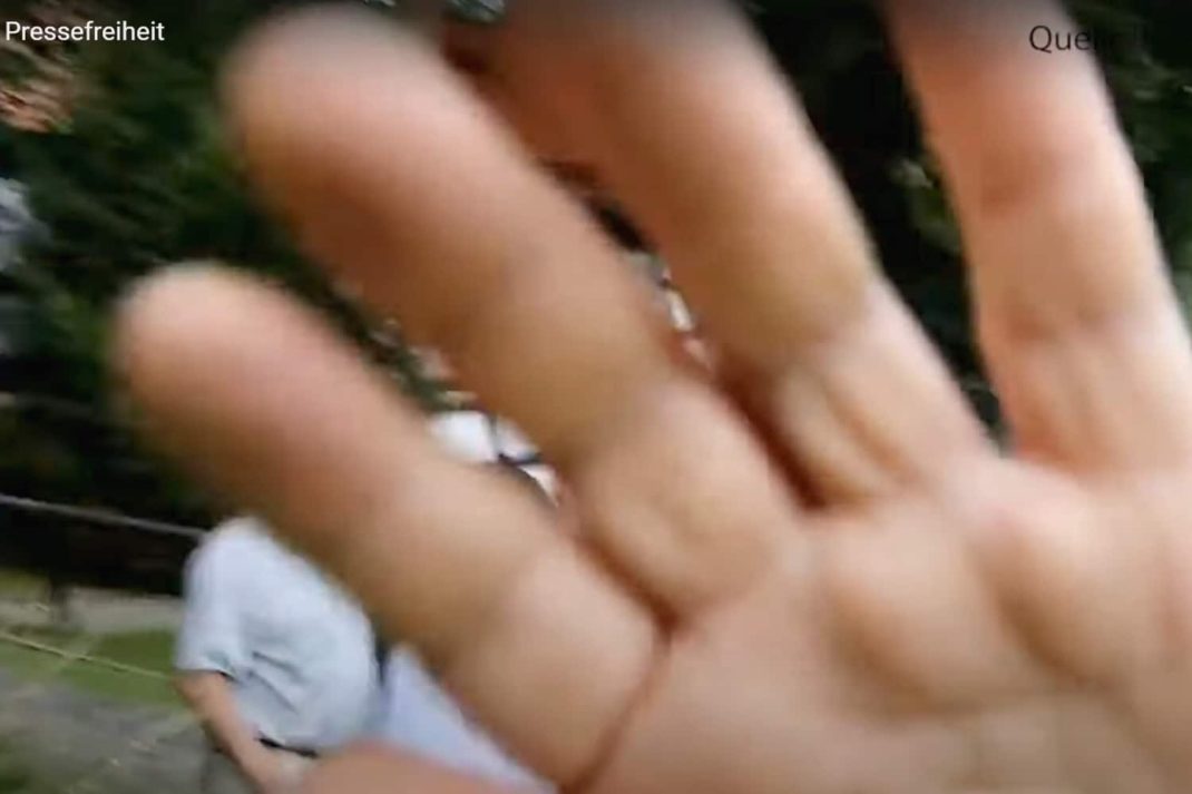 Wie mehrere Videos zeigen, ging der Journalist kurz darauf während eines Gerangels zu Boden. Er selbst sprach darin von „Sachbeschädigung“ und „Körperverletzung“.