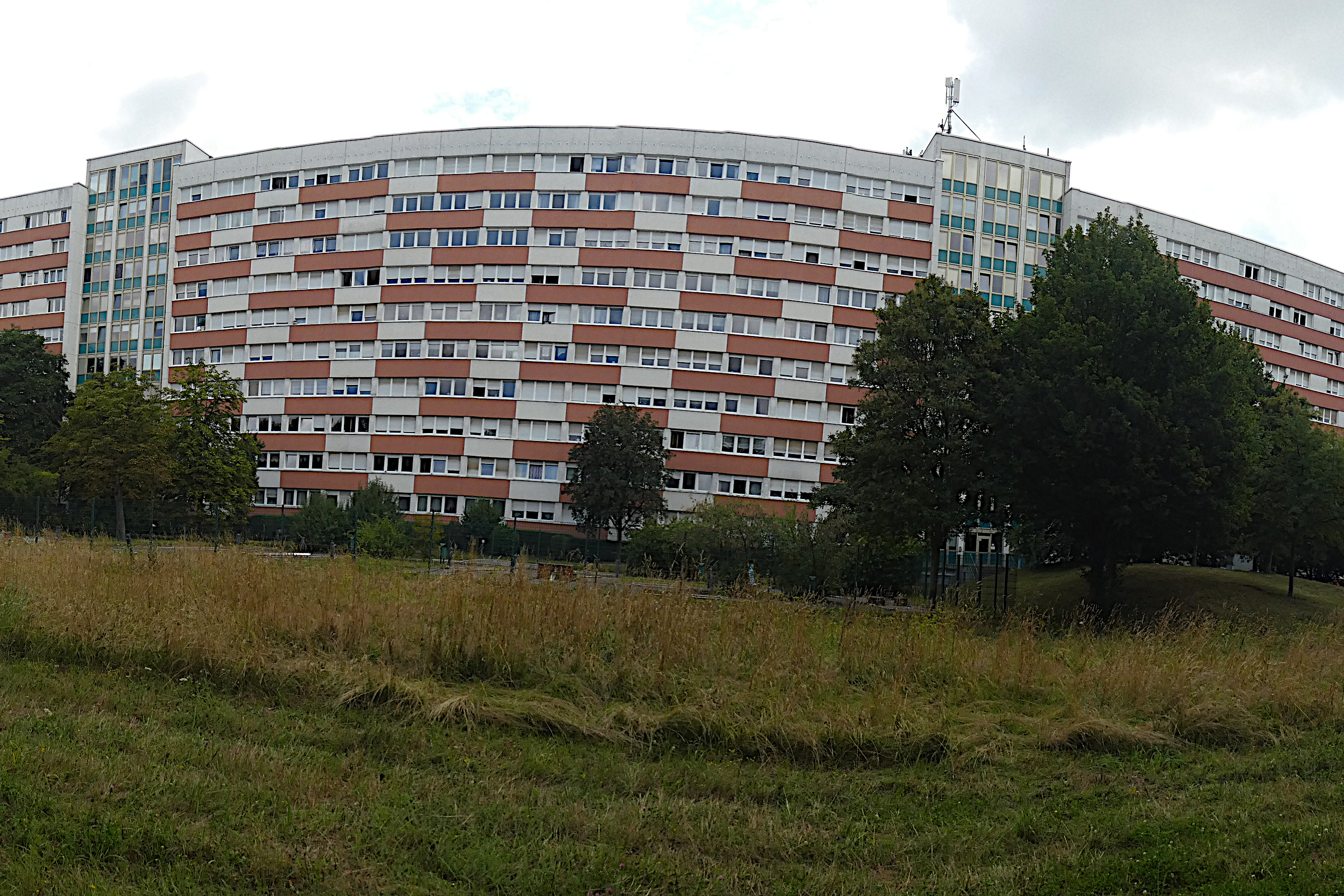 Hier schlug der Feuerteufel zu: Teil der „Langen Lene“ in Leipzig-Probstheida. Sie gilt mit ihren 333 Metern unter anderem als längstes Wohn- und Mietshaus in Leipzig sowie längstes Wohnhaus mit Mittelgang in Deutschland und ist nach der Dichterin Lene Voigt benannt. Es gibt etwa 1.300 Bewohner und 800 Wohneinheiten. Foto: Lucas Böhme