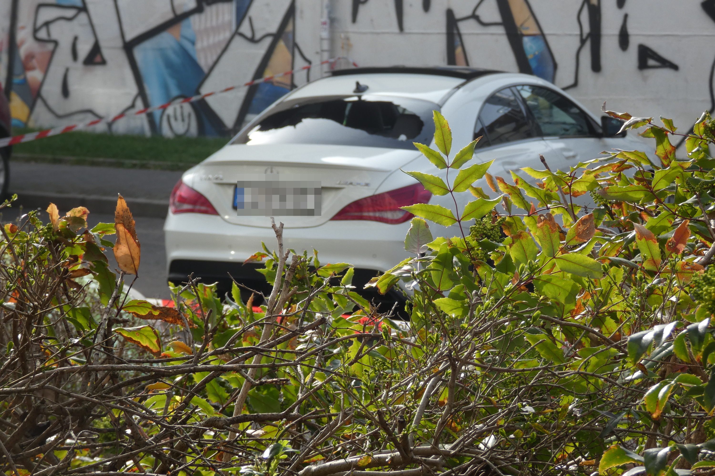 Dabei wurde durch ihn offenbar auch ein Schuss abgegeben, wie vor Ort zu vernehmen war. Kripo und Staatsanwaltschaft ermitteln zum genauen Ablauf des Geschehens. Das Fluchtfahrzeug, ein weißer Mercedes, wurde in der nahegelegenen Hildegardstraße sichergestellt. Vom Fahrer fehlte nach ersten Informationen zunächst noch jede Spur.