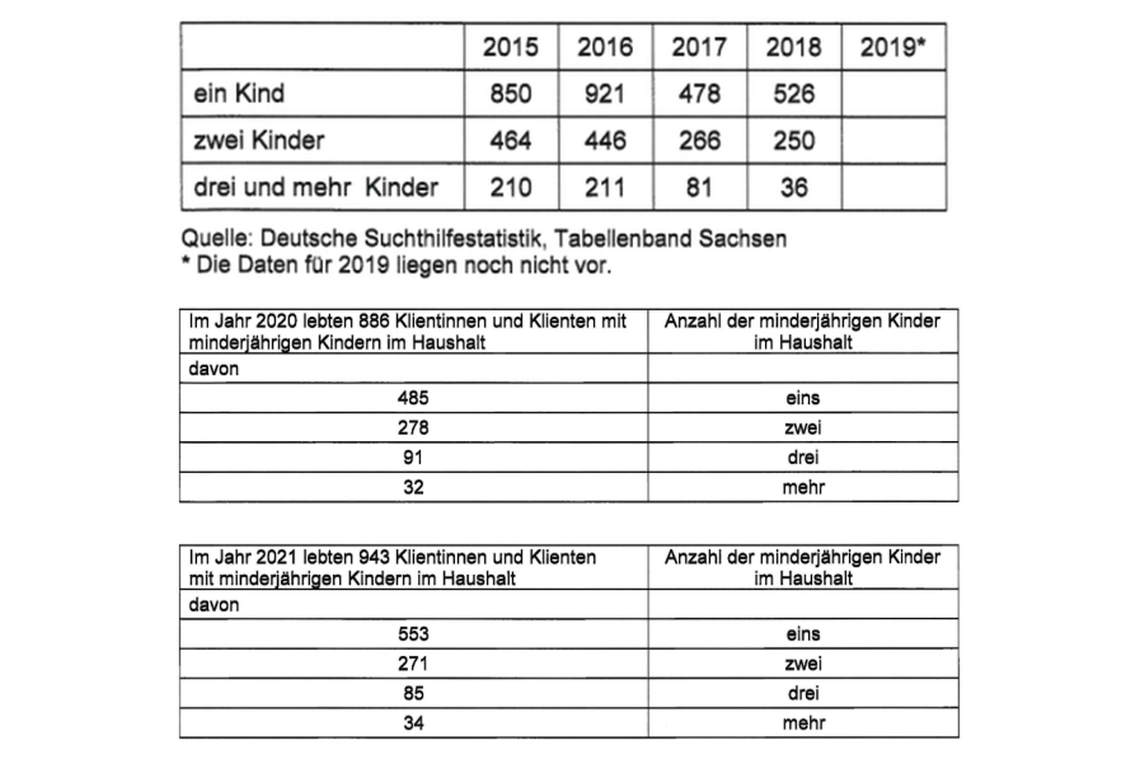 Für 2022 liegen noch keine Zahlen vor, wie Petra Köpping auf die letzte Anfrage von Susanne Schaper hin mitteilte. Aber dass es jedes Jahr einige hundert Familien betrifft, machen die Daten der Vorjahre deutlich. 2021 waren es 886 Klientinnen und Klienten, die mit Kindern in ihrem Haushalt lebten, 2021 dann 943.