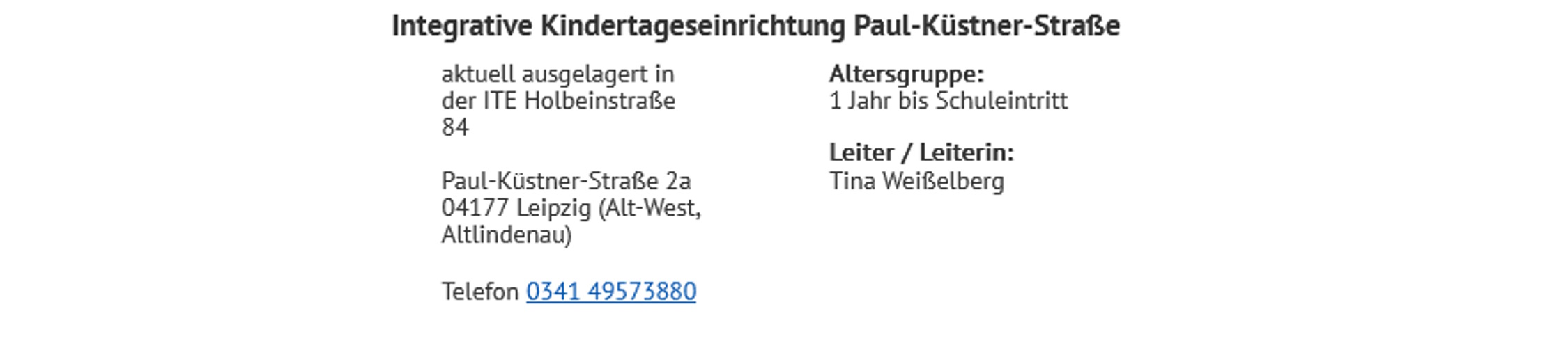 Die Anfrage im Wortlaut: Mehrfach erreichten mich Anfragen zur Integrativen Kindertagesstätte Paul-Küstner-Straße. Diese ist seit längerer Zeit geschlossen, die einzige Information auf der Website der Stadt Leipzig ist, dass diese in die ITE Holbeinstraße ausgelagert ist.