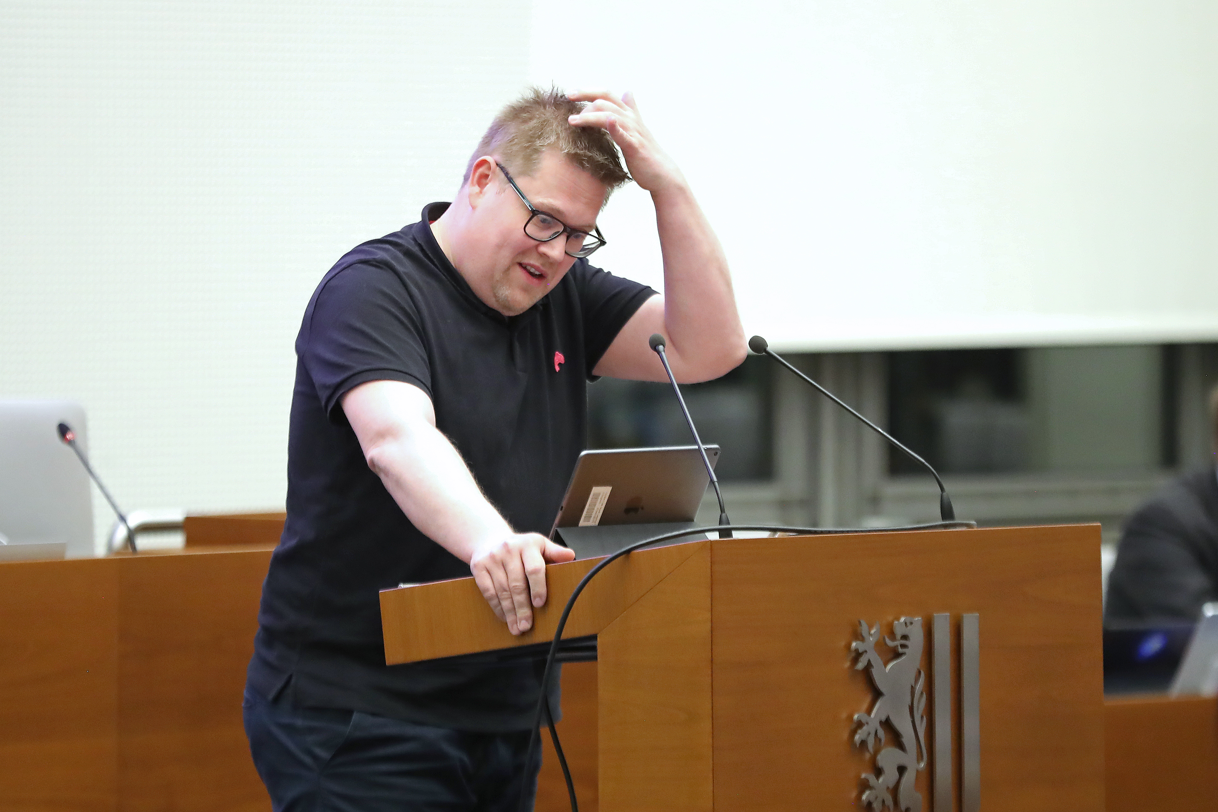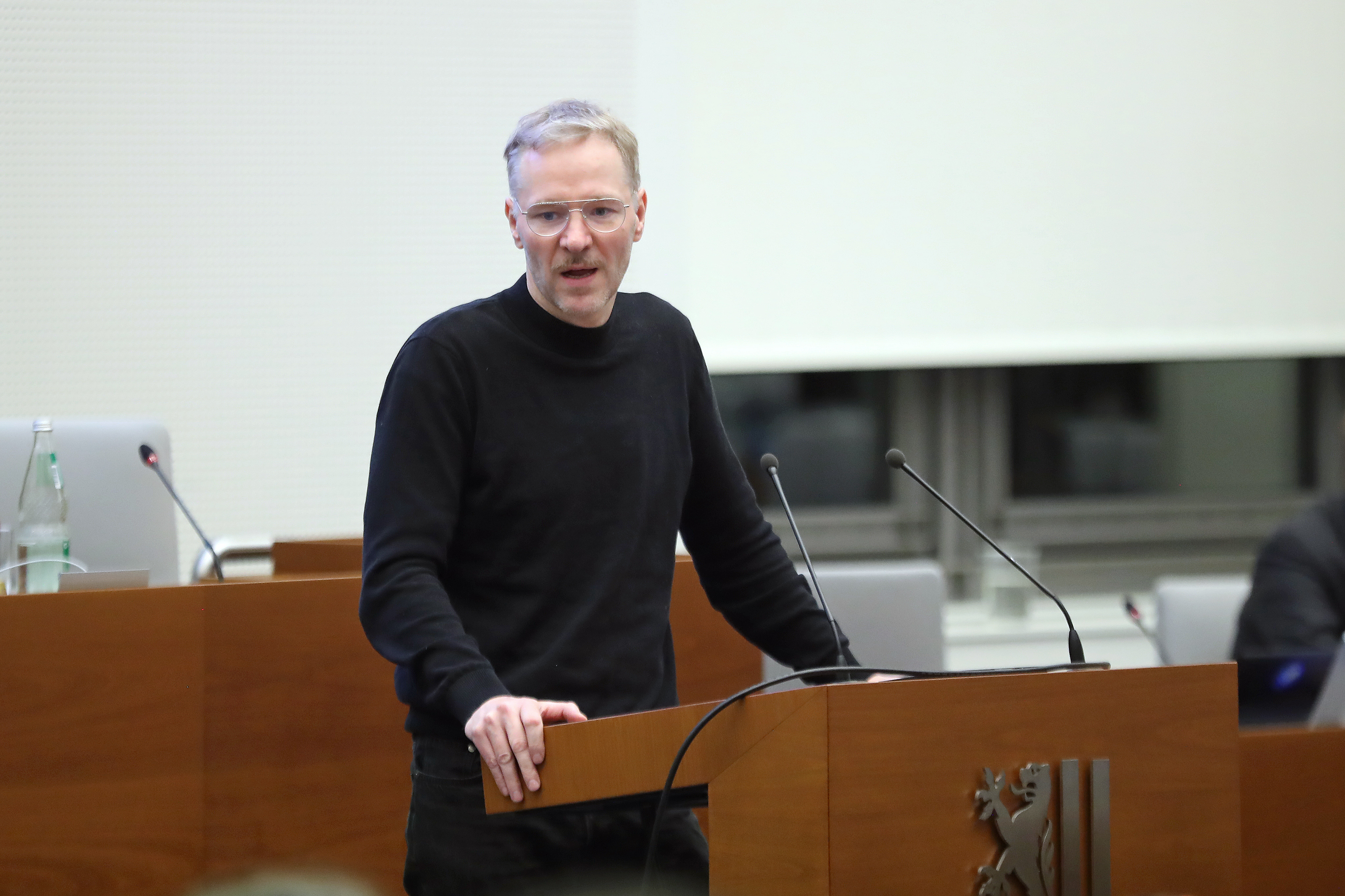 Mathias Weber (Die Linke) im Leipziger Stadtrat am 13.03.24. Foto: Jan Kaefer