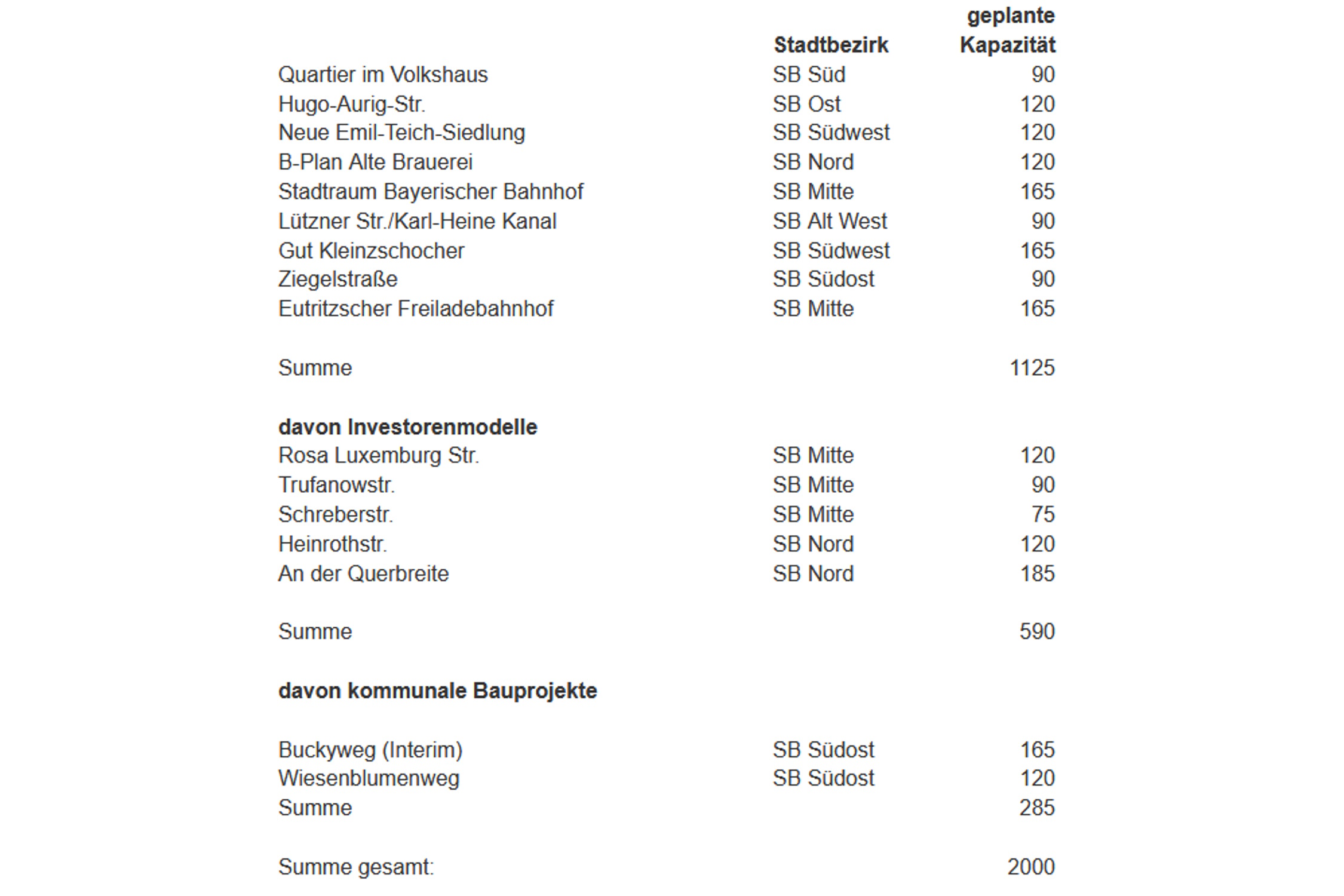 „Für die Kapazitätsplanung legt die Stadt Leipzig regelmäßig die durchschnittliche Belegung des Vorjahres zugrunde und ergänzt diese um einen Puffer von 10 Prozent, um dem Rechtsanspruch auf frühkindliche Bildung, Erziehung und Betreuung sowie dem Wunsch- und Wahlrecht der Eltern Rechnung zu tragen und eine wohnortnahe Versorgung sicherzustellen“, erläutert das Amt für Jugend und Familie die Grundlage der Kapazitätsplanungen.