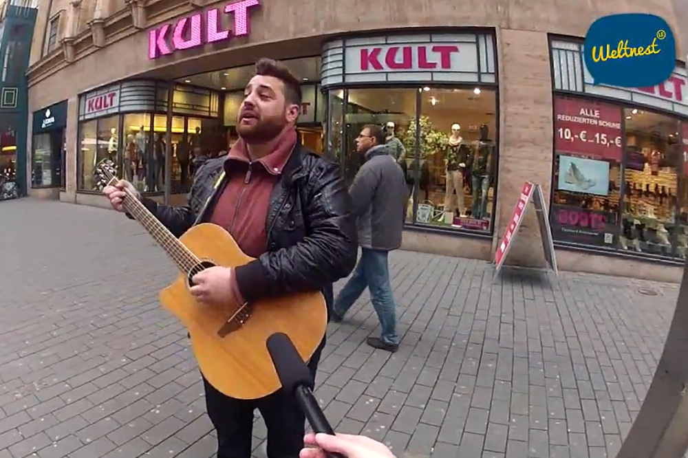 Sänger Flo von der bekannten Leipziger Band “I come from the sun” in der City. Foto: Screenshot Video Weltnest.de