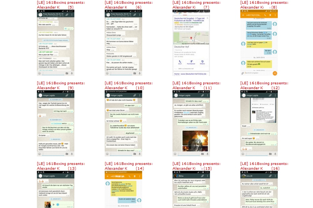 Das Material stammt wahrscheinlich von einem Handy, das Antifa-Aktivisten Alexander K. im vergangenen März geraubt hatten. Die Urheber des Indymedia-Artikels nennen sich selbst „161Boxing“ und sprechen in der Einleitung von „militanten Antifaschist_innen“, die in den Besitz der geleakten Datensammlung gekommen seien.