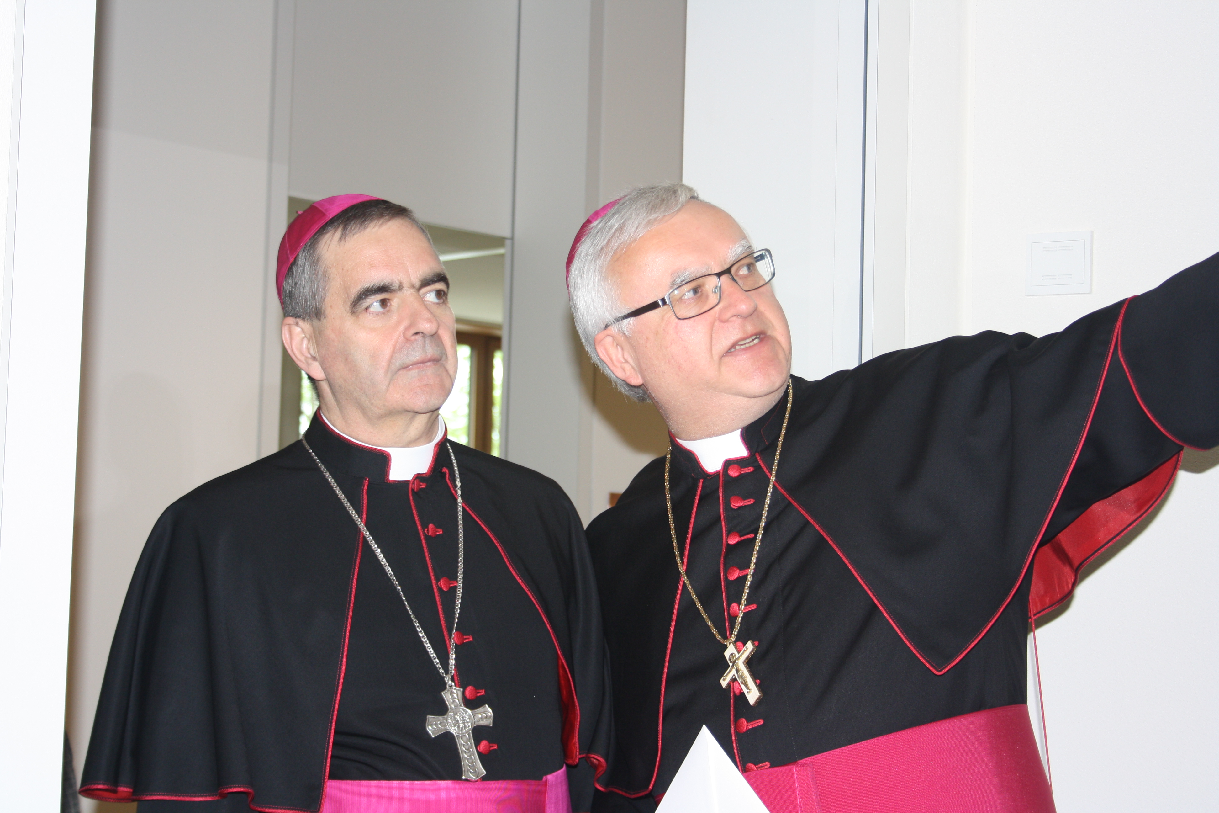Darauf ging Bischof Koch in seiner Predigt ein: “Schon jetzt gibt es für mich ein Lieblingsstück in dieser Kirche: die kleine Glocke, die lange, bevor sie zum ersten Mal läutet, schon so viel Wirbel in der Presse ausgelöst hat, weil sie in ihrer Kleinheit nicht in den Turm zu passen schien, weil sie den ganzen Turm durcheinander zu wirbeln drohte, und die nun von außen angeschlagen wird.”