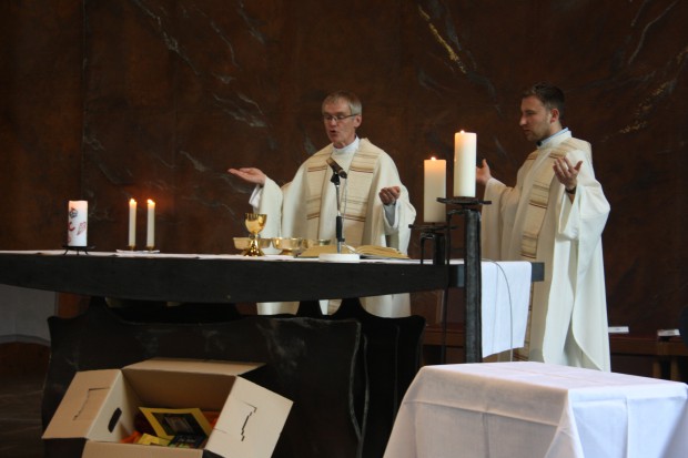 Eigentlich ist Gott überall. Er braucht keinen festen Ort: “Der Himmel ist mein Stuhl und die Erde meine Fußbank; was ist’s denn für ein Haus, daß ihr mir bauen wollt?”, steht bei Jesaja. Insofern könnte man auch und gerade aus christlicher Perspektive den heutigen Tag gelassen sehen. Ein Gebäude, das seit 1982 als Kirche genutzt wurde, wird nun nicht mehr kirchlich genutzt. Zumindest der Hauptaltar und der Tabernakel fanden heute zum letzten Mal liturgische Verwendung. Es gibt ja noch eine Tageskapelle. Da werden noch bis zum Freitag Gottesdienste stattfinden. Dann erfolgt in einer Lichterprozession der feierliche Umzug vom Rosental an den Ring, wo am Samstag die neue Propstei eingeweiht wird.