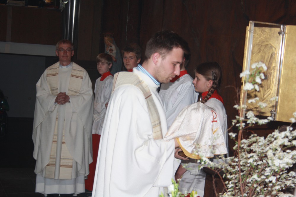 Am Ende des Gottesdienstes jedenfalls wurde der Abschied handgreiflich. In katholischen Altären ist immer ein Erinnerungsstück an einen Heiligen eingelegt. Das soll daran erinnern, dass die Kirche davon lebt, dass Menschen ihr Leben für den Glauben einsetzen. In der Propstei findet sich eine Reliquie von Albertus Magnus. Diese wurde nun aus dem Altar entfernt. Bis zur Überführung am kommenden Freitag wird sie an einem sicheren Ort aufbewahrt. Die Kerzen sind gelöscht. Auch das Ewige Licht, Zeichen der liturgischen Gegenwart Gottes, ist nun erloschen. Der Tabernakel wurde geöffnet. Die heiligen Gaben rausgenommen. Ein bischöfliches Dekret wird nach der Einweihung der neuen Propstei aus der Kirche ein gewöhnliches Haus machen. So endet ein Kapitel regionaler Kirchengeschichte.