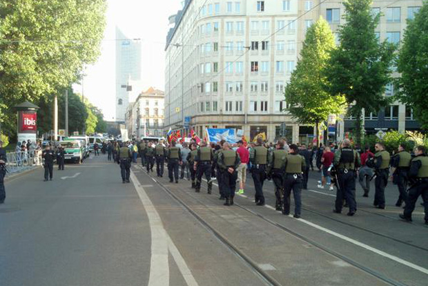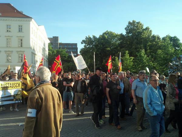 Nach einigen Wochen Pause marschiert das fremdenfeindliche Bündnis Legida am heutigen Montag wieder in Leipzig. Diesmal kann man den Parolen jedoch leider nicht via Livestream lauschen, wie das Bündnis auf seiner Facebook-Seite verlauten lässt: "Herzlich Willkommen vom Live Team, direkt vom Richard Wagner Platz hier in unserer Stadt. Technik steht - wir berichten heute per Facebook." 1.000 Teilnehmer hatten die Veranstalter für ihren "13. Abendspaziergang" im Vorfeld angekündigt bzw. wohl eher gewünscht. Tatsächlich machten sich letztendlich 250 bis 300 Teilnehmer auf die Socken.
