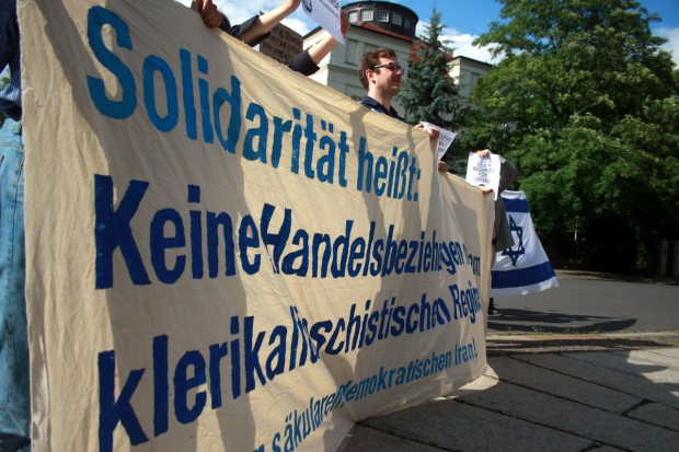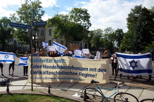 Der zweite Grund für diese Kundgebung ist, dass sich neben allen UN-Vetomächten auch Deutschland an diesem Deal beteiligt hat. Die Bundesrepublik saß mit am Verhandlungstisch. Nun wird Sigmar Gabriel noch in dieser Woche in den Iran fahren, um mit hochrangigen Unternehmern die Handelsbeziehungen zum terroristischen Regime zu intensivieren. So viel zur Interessenlage der Bundesregierung.