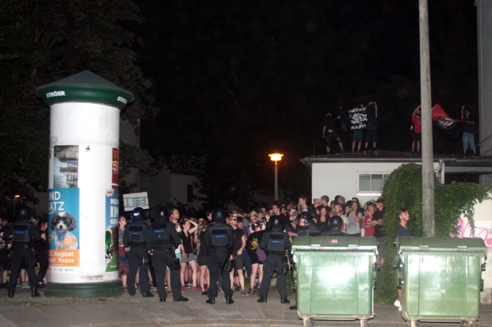 Auf dem Rückweg durch die Jahnallee, eifrig bestaunt aus den Läden und Spätverkaufsgeschäften am Rande. Insgesamt so runde 1.000, die heute Legia und Pegida auf die Beine stellen konnte. Auf Seiten des Gegenprotestes ist es aufgrund der Routenführung mal wieder schwer etwas zu sagen. Zeit gegen 20:30 Uhr mal ein paar einfache Impressionen einzufangen, wer da auf der Straße geht. Zu sagen gabs heute seitens Legida nicht viel. Warum sollte man also noch unnötig weiterschreiben? Das Wichtigste vielleicht: bis auch nur in die Nähe der Grubehalle gings einfach nicht. Überall Menschen, die bereits den Waldplatz und später den oberen Teil der Jahnallee versperrten.
