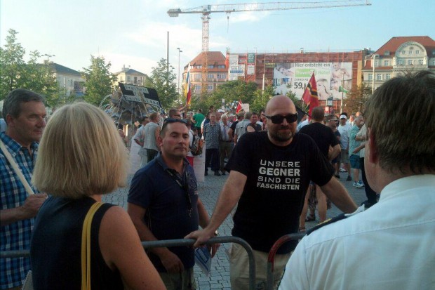 Michel Stürzenberger, ehemals Mitglied der CSU, ist aus Bayern mal rüber gekommen, um auf der Bühne ein paar ausländer- äh muslimfeindliche Parolen loszuwerden. Hören wir einfach noch ein wenig den “Abschieberufen” zu und fragen uns, wie die Legidas so einen Moslem erkennen? So auf der Straße halt. “Zigeuner”, Muslime und sonstige Feinde. Bei Stürzenberger gibt’s mal wieder Abziehbilder am Stück. Unfähig halt, selbst Länder aufzubauen, für den Krieg geboren offenbar.
