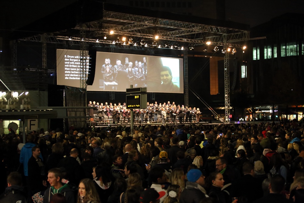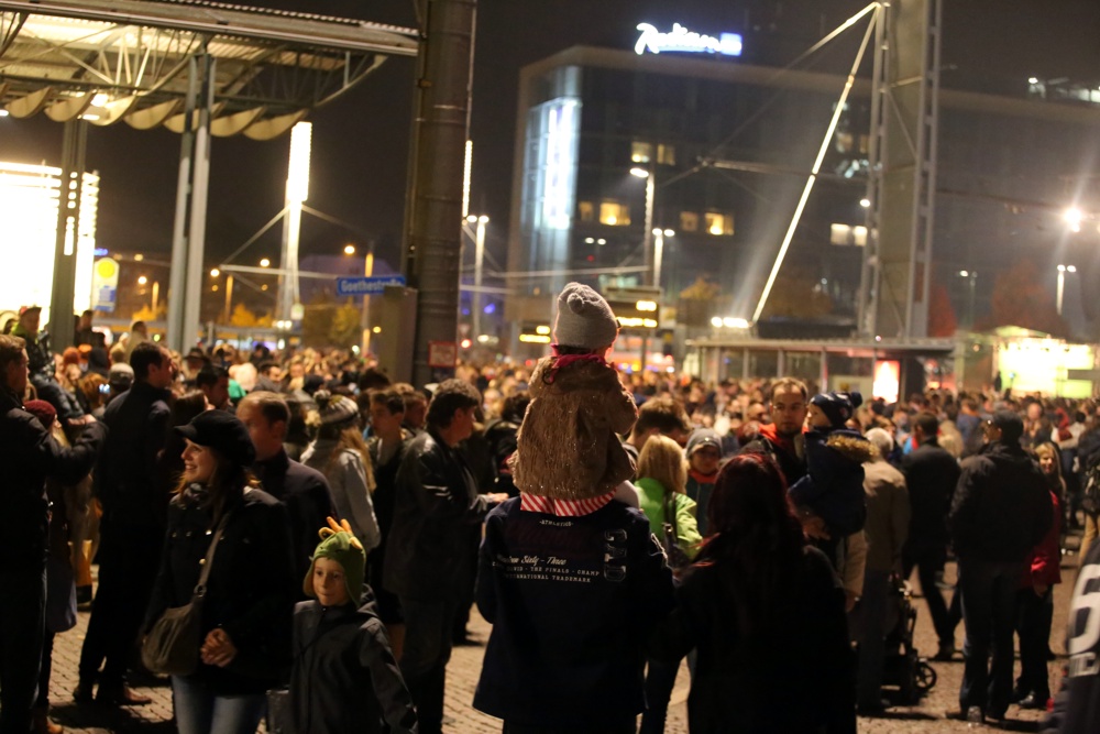25.000 Zuschauer haben sich – so schätzen die Organisatoren ein – am Freitagabend auf dem Augustusplatz eingefunden, um die stellenweise durchaus anrührende Schau zu sehen, Lichter anzuzünden und die berühmte ’89 zu füllen. Sie haben auf der Bildwand auch etliche Bilder gesehen, die den Herbst ’89 mit der Gegenwart verknüpften. Pegida und Legida waren auch mal kurz Thema, diese Klone einer einst mal großen Idee, die in ihrer kleinen Nische glauben, sie seien das Volk.
