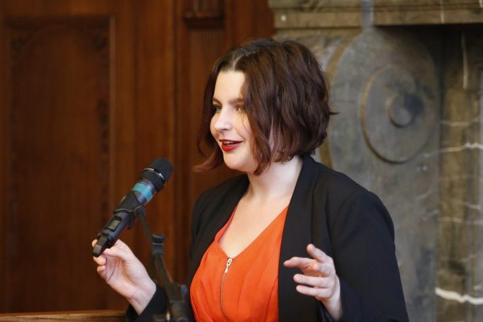 Im Anschluss folgte der Beitrag „Was Frauen wollen“ von Marsha Richarz, die sich anfänglich verunsichert über den offiziellen Rahmen äußerte, da sie normalerweise auf Poetry-Slams auftrete. „Ich selbst hasse Rosa, klettere seit meiner Kindheit auf Bäume, kann eine Bohrmaschine benutzen und habe Angst vor festen Bindungen, obwohl ich Brüste habe“, pointierte Richarz gängige sexistische Klischees und brachte Erheiterung unter die Anwesenden. Begleitet wurde die Veranstaltung zudem von mehreren Stücken von Kyra Steckeweh am Flügel.