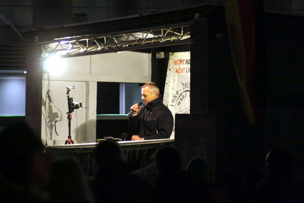 Übrigens hatte Johnke immer mal wieder ein paar Probleme mit dem Mikro. Es besteht noch Hoffnung, dass es im Laufe des Abends komplett den Geist aufgibt. Es wäre dann auf einem Niveau mit den Menschen vor der Bühne.