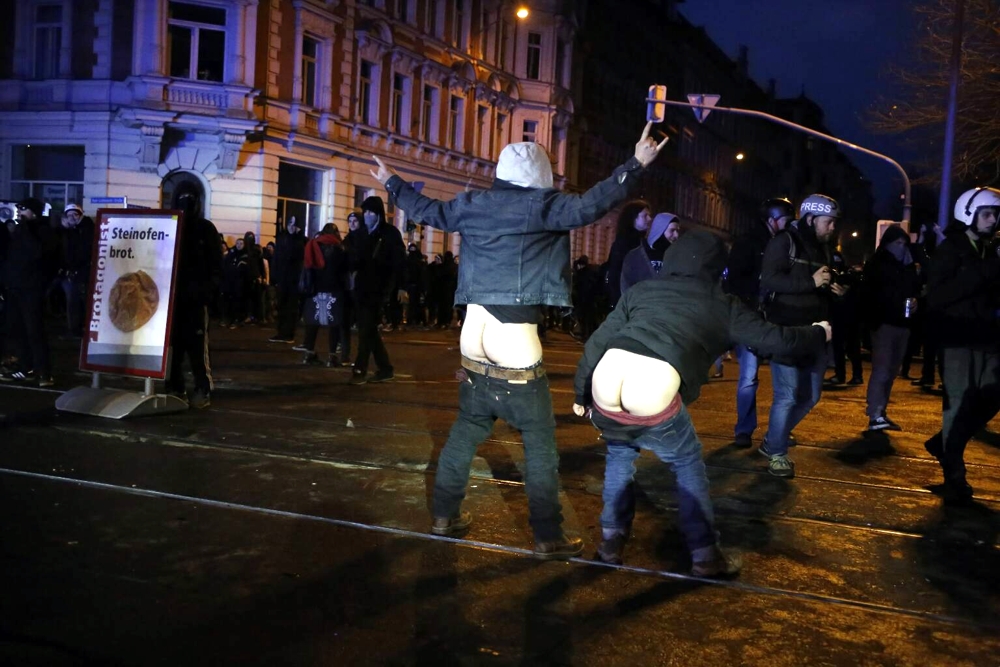 Während sich die braune Demonstration mit nicht einmal 200 Teilnehmern weit unterhalb der Schwelle bewegte, die man nach den massiven Mobilisierungsversuchen auf rechtsextremen Netzseiten hätte vermuten können, lag der Fokus auf den Randalierern auf der Gegenseite. Bereits während der rechte Aufzug mit laustarken Protest-Rufen begleitet worden war, hatten die ersten Steinwürfe und Auseinandersetzungen zwischen ihnen und der Polizei begonnen. Im Netz kursieren die Vorwürfe, welche hier mancher zur Rechtfertigung vorbringen möchte – von einer “rechten Polizei” ist die Rede, in der Gesinnung den Rechtsextremen nahe.