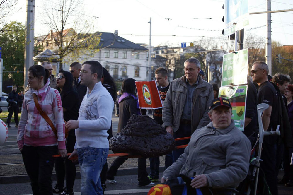 „Adressat verweigert Annahme, ‚brauner Mist‘ Retour zum Absender!“, lautet das Motto, unter dem Legida heute Abend vom Richard-Wagner-Platz zur Polizeidirektion in der Dimitroffstraße ziehen möchte. Was genau damit gemeint ist, blieb bis zum Start der Kundgebung offen. In den vergangenen Tagen hatte es einen öffentlichen Streit zwischen Orgateam und Pressestelle der Polizei gegeben. Letztere hatte fälschlicherweise behauptet, am 4. April einen Legida-Teilnehmer mit Hakenkreuz-Armbinde gesichtet zu haben. Tatsächlich lief die Person bei der Parallelveranstaltung von „Wir lieben Sachsen/Thügida“ mit und trug „lediglich“ eine Armkette mit Hakenkreuz.