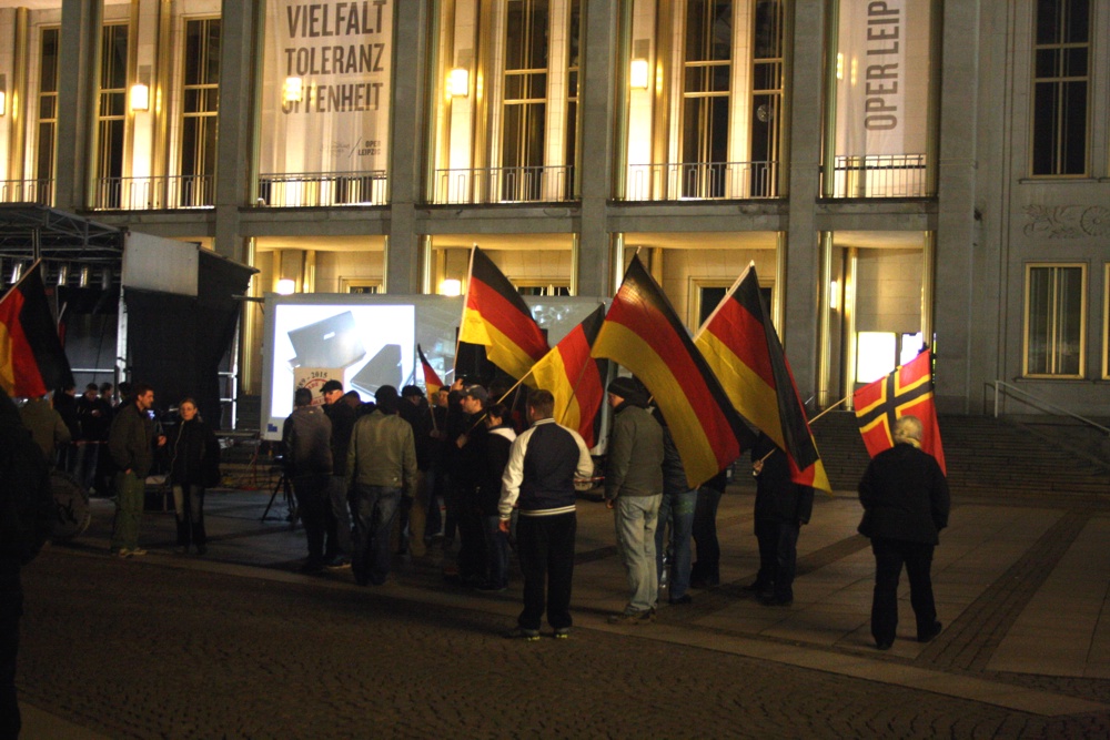 Also posiert die Pegida-Frontfrau mit einer Mistgabel triumphierend im Leipziger Rathaus und hetzt weiter im völkisch-nationalsozialistischen Jargon – so wie sie und viele andere es Montag für Montag auf den Kundgebungen von Pegida/Legida/AfD tun.